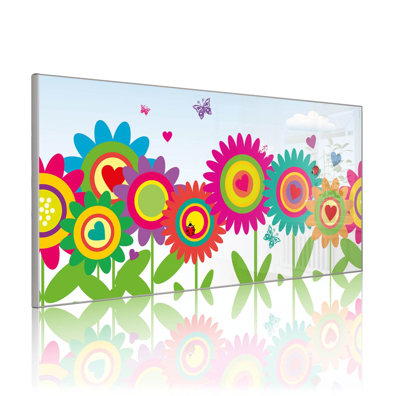 Metall Magnettafel beschreibbar 78x37cm Motiv Bunte Blumen
