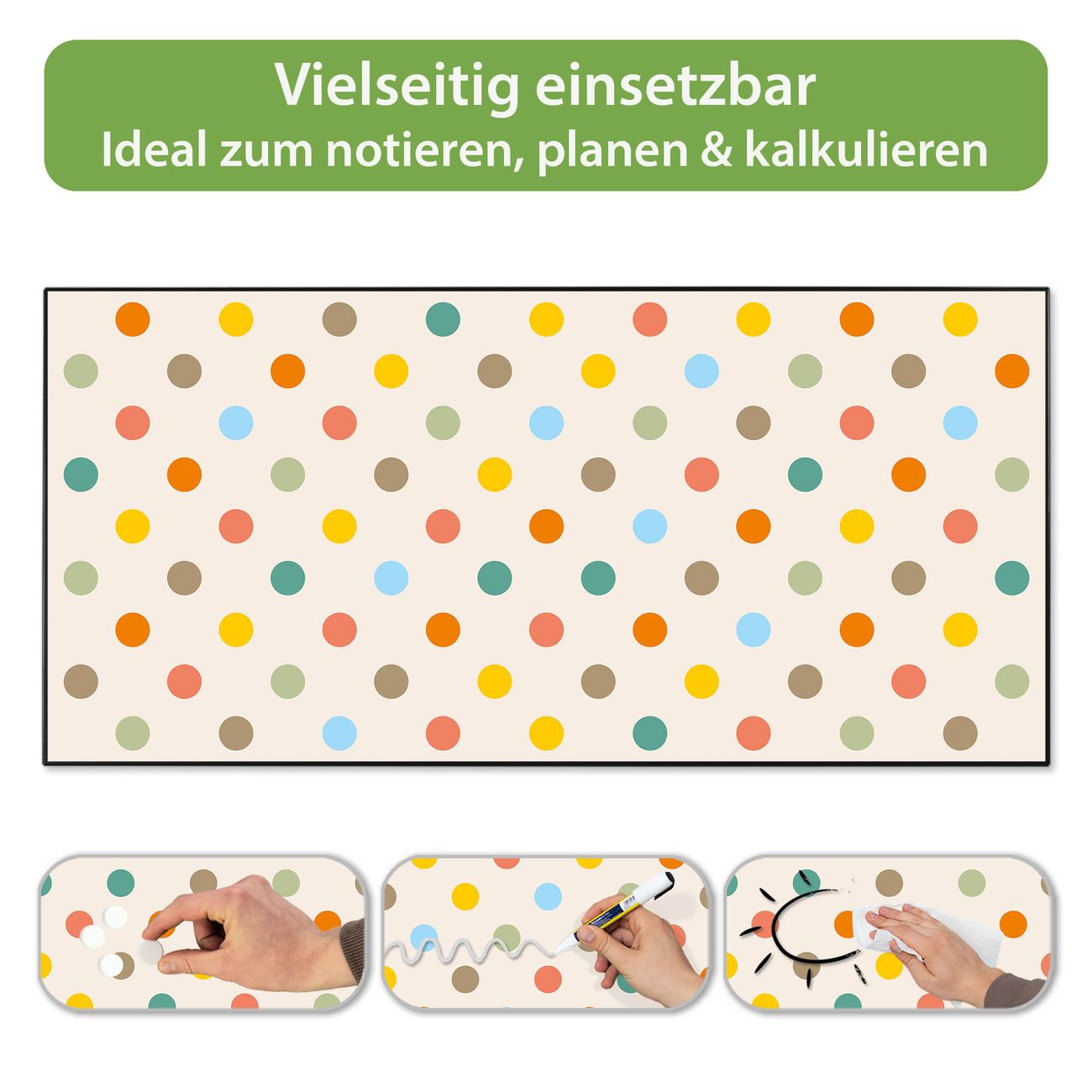Metall Magnettafel beschreibbar 78x37cm Motiv Bunte Punkte
