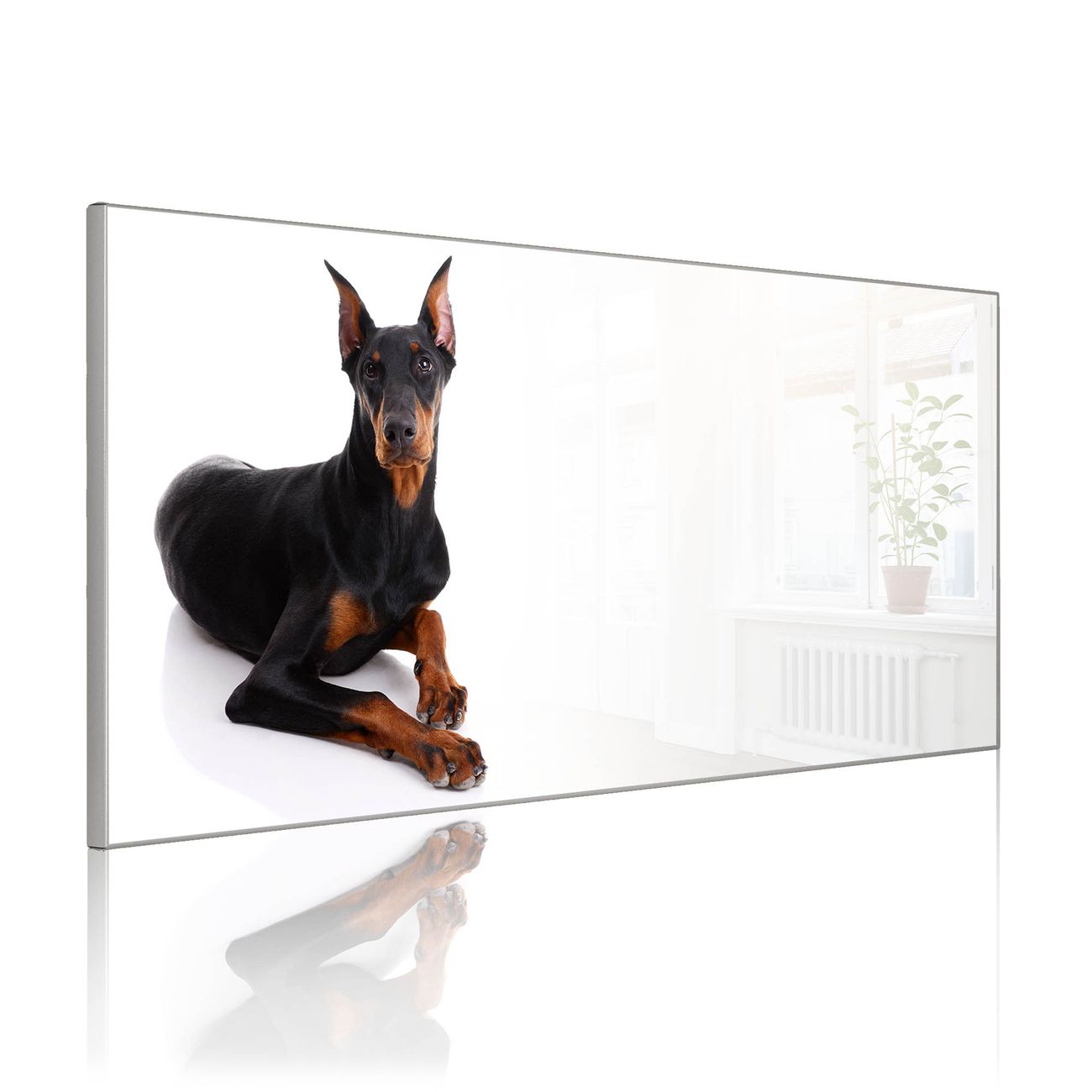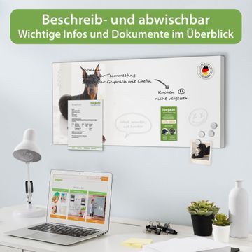 FUNKTION: Die banjado Magnettafel 78x37 cm im Design Motiv Dobermann vereint Funktionalität und modernes Wohndesign auf stilvolle Weise. Diese hochwertige Magnetwand aus Metall hilft Ihnen dabei, Notizen, Fotos, Termine, Einkaufslisten oder Rezepte übersichtlich zu organisieren. Als praktisches Memoboard sorgt sie für Struktur im Alltag und setzt gleichzeitig einen dekorativen Akzent an Ihrer Wand. DESIGN: Die Metalltafel besteht aus robustem, lackiertem Stahl und ist mit allen handelsüblichen Magneten nutzbar. Besonders praktisch ist die beschreibbare Oberfläche. Sie können die Magnettafel ganz einfach mit Kreidestiften beschriften und die Inhalte bei Bedarf mit einem feuchten Tuch wieder entfernen. So eignet sich das Memoboard ideal für Wochenpläne, Menüpläne, To Do Listen oder kreative Botschaften. DETAILS: Mit ihrem großzügigen Querformat von 78x37 cm bietet die Magnettafel ausreichend Platz für Ihre Organisation. Das Motiv Motiv Dobermann bringt eine warme, natürliche Optik in Küche, Flur, Büro oder Homeoffice und wirkt auch ohne Magnete oder Beschriftung wie ein modernes Wandbild. NUTZEN: Auf der Rückseite befinden sich vorgefertigte Löcher für eine schnelle und unkomplizierte Wandmontage. Jede banjado Magnettafel wird in Deutschland gefertigt und steht für Qualität, Langlebigkeit und liebevolle Verarbeitung. Dieses beschreibbare Memoboard ist die perfekte Kombination aus Metalltafel, Designobjekt und praktischer Magnetwand für Ihren Alltag. BANJADO: Wir sind ein kleines Team aus dem Herzen von Sachsen. Wir fertigen alle Artikel von Hand für Sie an, Sie erhalten keine preiswerte Importware. Auf Wunsch können Sie auch Ihr eigenes Foto auf die Magnettafel aufbringen, schreiben Sie uns an. Herzlichst, Ihr banjado-Team