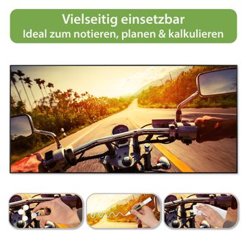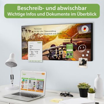 FUNKTION: Die banjado Magnettafel 78x37 cm im Design Motiv Easy Rider vereint Funktionalität und modernes Wohndesign auf stilvolle Weise. Diese hochwertige Magnetwand aus Metall hilft Ihnen dabei, Notizen, Fotos, Termine, Einkaufslisten oder Rezepte übersichtlich zu organisieren. Als praktisches Memoboard sorgt sie für Struktur im Alltag und setzt gleichzeitig einen dekorativen Akzent an Ihrer Wand. DESIGN: Die Metalltafel besteht aus robustem, lackiertem Stahl und ist mit allen handelsüblichen Magneten nutzbar. Besonders praktisch ist die beschreibbare Oberfläche. Sie können die Magnettafel ganz einfach mit Kreidestiften beschriften und die Inhalte bei Bedarf mit einem feuchten Tuch wieder entfernen. So eignet sich das Memoboard ideal für Wochenpläne, Menüpläne, To Do Listen oder kreative Botschaften. DETAILS: Mit ihrem großzügigen Querformat von 78x37 cm bietet die Magnettafel ausreichend Platz für Ihre Organisation. Das Motiv Motiv Easy Rider bringt eine warme, natürliche Optik in Küche, Flur, Büro oder Homeoffice und wirkt auch ohne Magnete oder Beschriftung wie ein modernes Wandbild. NUTZEN: Auf der Rückseite befinden sich vorgefertigte Löcher für eine schnelle und unkomplizierte Wandmontage. Jede banjado Magnettafel wird in Deutschland gefertigt und steht für Qualität, Langlebigkeit und liebevolle Verarbeitung. Dieses beschreibbare Memoboard ist die perfekte Kombination aus Metalltafel, Designobjekt und praktischer Magnetwand für Ihren Alltag. BANJADO: Wir sind ein kleines Team aus dem Herzen von Sachsen. Wir fertigen alle Artikel von Hand für Sie an, Sie erhalten keine preiswerte Importware. Auf Wunsch können Sie auch Ihr eigenes Foto auf die Magnettafel aufbringen, schreiben Sie uns an. Herzlichst, Ihr banjado-Team