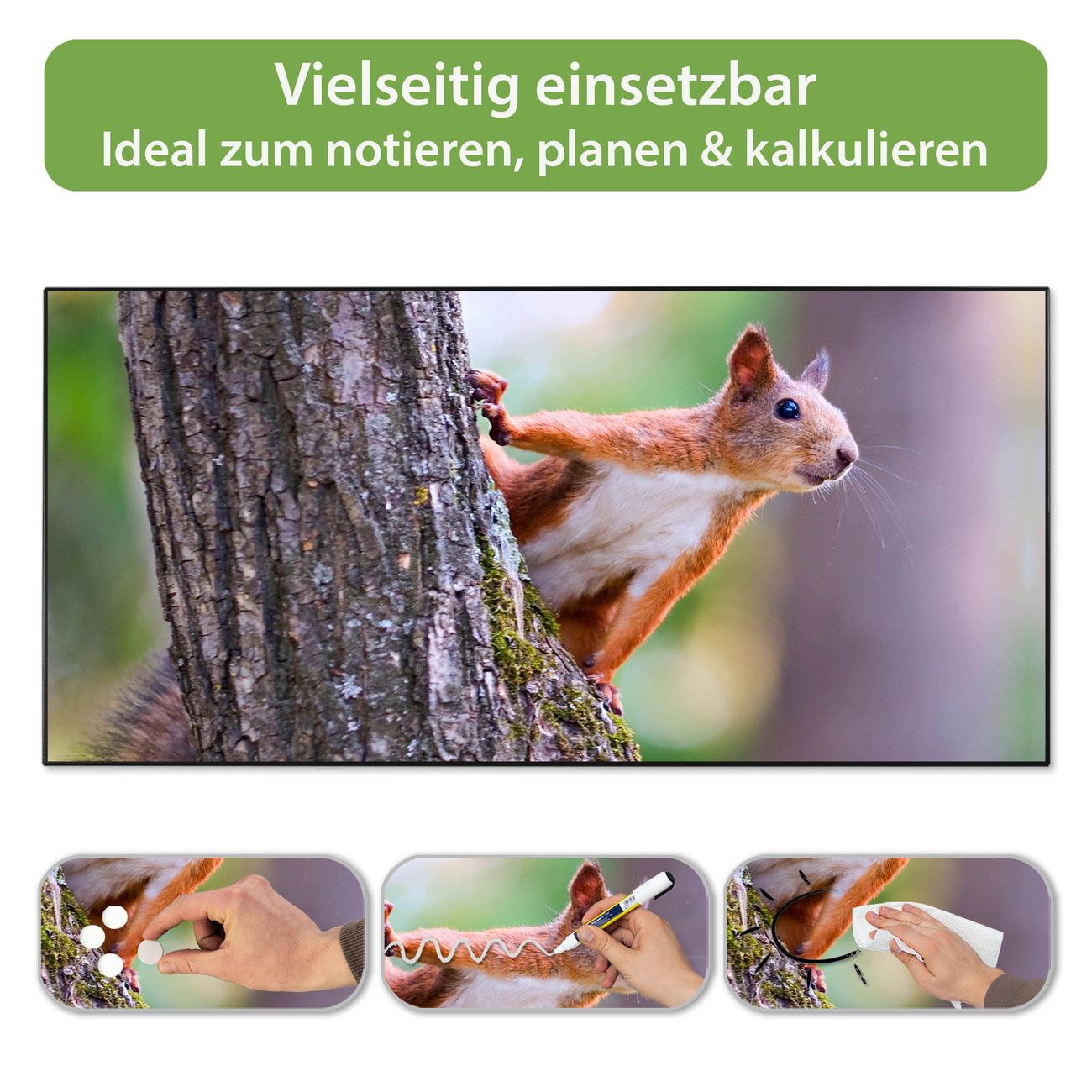 Metall Magnettafel beschreibbar 78x37cm Motiv Eichhörnchen