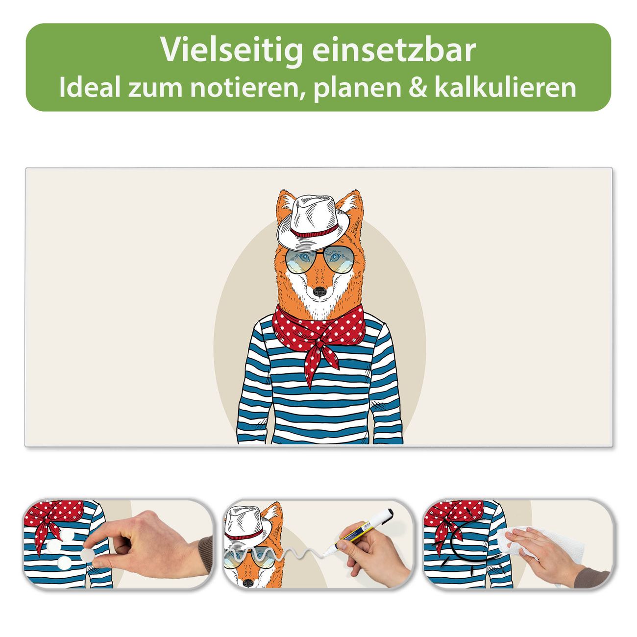 Metall Magnettafel beschreibbar 78x37cm Motiv Fancy Fox