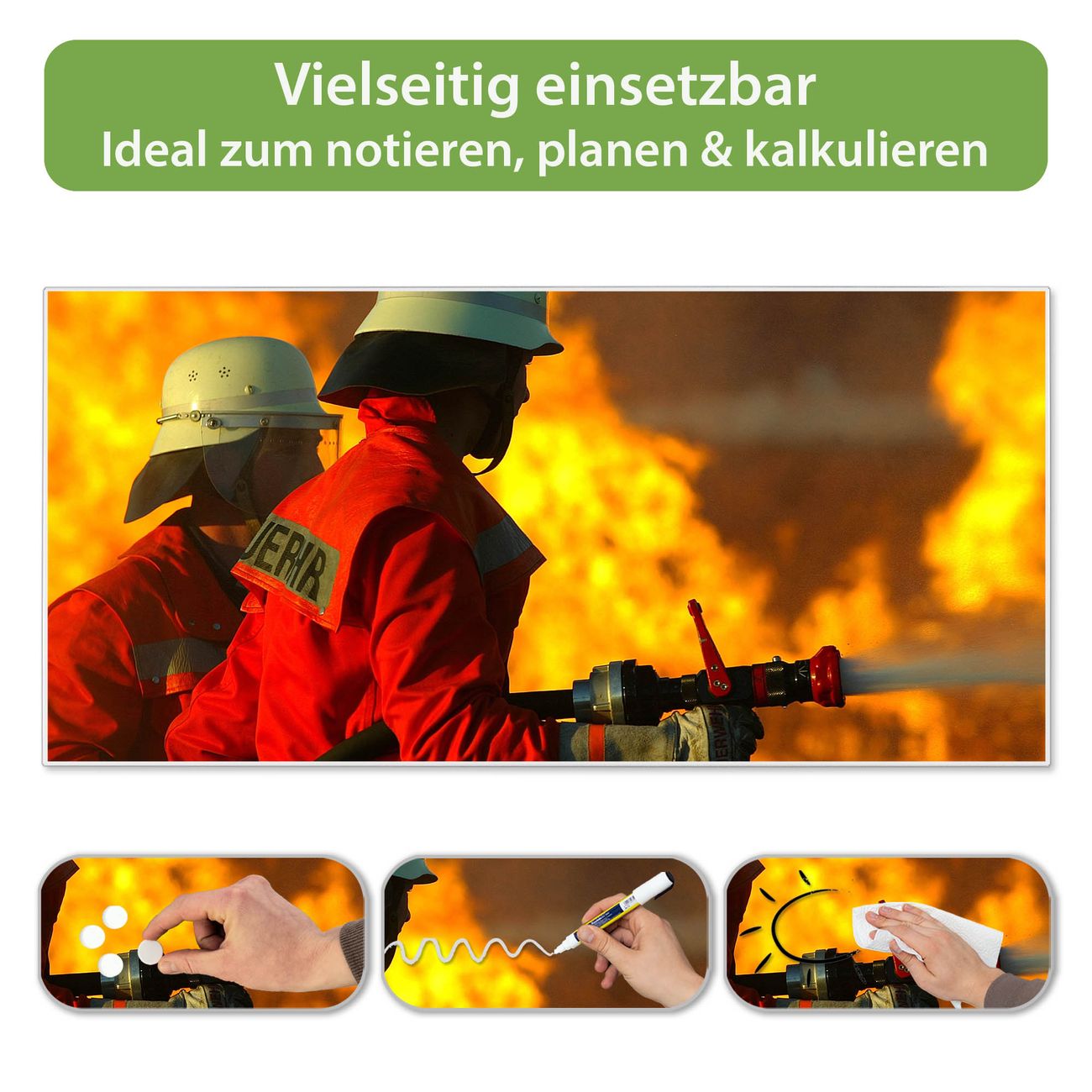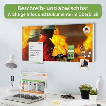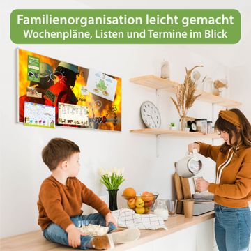 FUNKTION: Die banjado Magnettafel 78x37 cm im Design Motiv Feuer vereint Funktionalität und modernes Wohndesign auf stilvolle Weise. Diese hochwertige Magnetwand aus Metall hilft Ihnen dabei, Notizen, Fotos, Termine, Einkaufslisten oder Rezepte übersichtlich zu organisieren. Als praktisches Memoboard sorgt sie für Struktur im Alltag und setzt gleichzeitig einen dekorativen Akzent an Ihrer Wand. DESIGN: Die Metalltafel besteht aus robustem, lackiertem Stahl und ist mit allen handelsüblichen Magneten nutzbar. Besonders praktisch ist die beschreibbare Oberfläche. Sie können die Magnettafel ganz einfach mit Kreidestiften beschriften und die Inhalte bei Bedarf mit einem feuchten Tuch wieder entfernen. So eignet sich das Memoboard ideal für Wochenpläne, Menüpläne, To Do Listen oder kreative Botschaften. DETAILS: Mit ihrem großzügigen Querformat von 78x37 cm bietet die Magnettafel ausreichend Platz für Ihre Organisation. Das Motiv Motiv Feuer bringt eine warme, natürliche Optik in Küche, Flur, Büro oder Homeoffice und wirkt auch ohne Magnete oder Beschriftung wie ein modernes Wandbild. NUTZEN: Auf der Rückseite befinden sich vorgefertigte Löcher für eine schnelle und unkomplizierte Wandmontage. Jede banjado Magnettafel wird in Deutschland gefertigt und steht für Qualität, Langlebigkeit und liebevolle Verarbeitung. Dieses beschreibbare Memoboard ist die perfekte Kombination aus Metalltafel, Designobjekt und praktischer Magnetwand für Ihren Alltag. BANJADO: Wir sind ein kleines Team aus dem Herzen von Sachsen. Wir fertigen alle Artikel von Hand für Sie an, Sie erhalten keine preiswerte Importware. Auf Wunsch können Sie auch Ihr eigenes Foto auf die Magnettafel aufbringen, schreiben Sie uns an. Herzlichst, Ihr banjado-Team