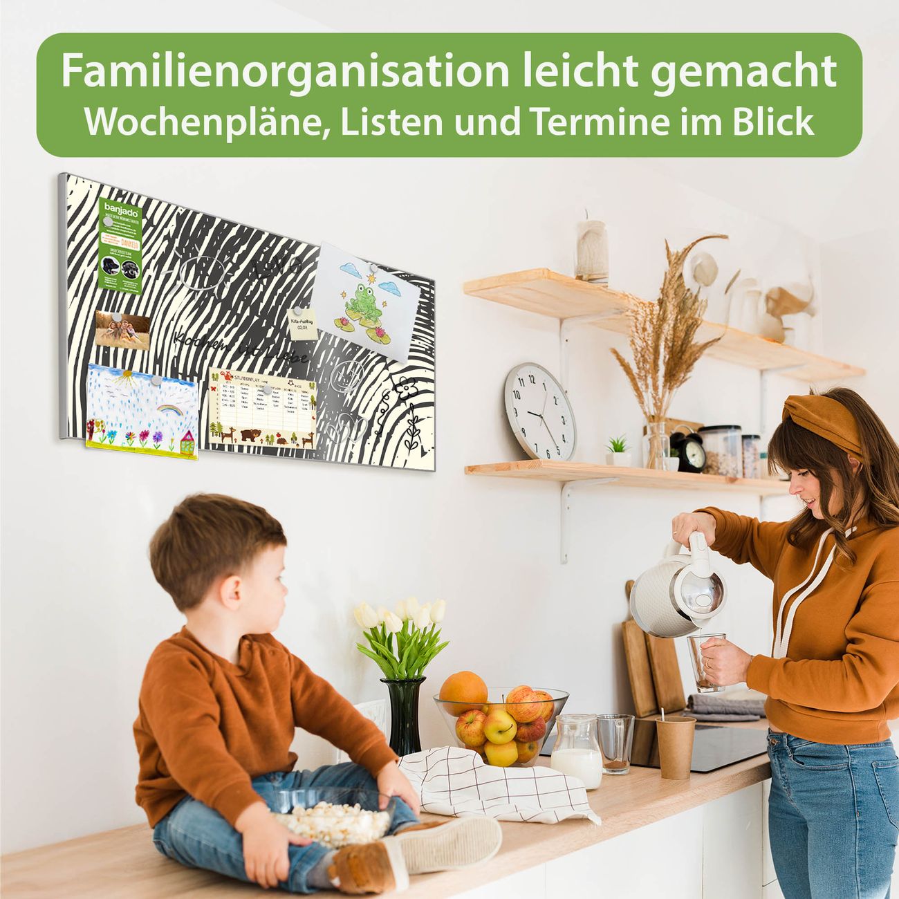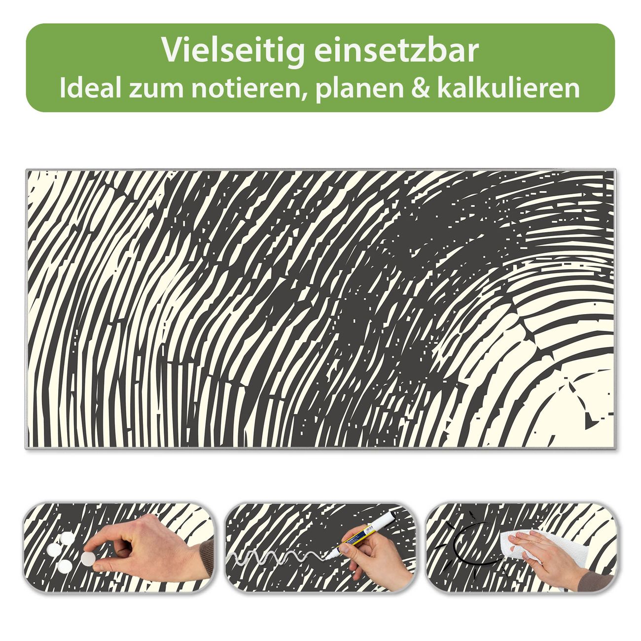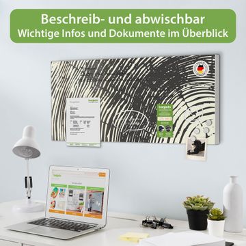 FUNKTION: Die banjado Magnettafel 78x37 cm im Design Motiv Fingerabdruck vereint Funktionalität und modernes Wohndesign auf stilvolle Weise. Diese hochwertige Magnetwand aus Metall hilft Ihnen dabei, Notizen, Fotos, Termine, Einkaufslisten oder Rezepte übersichtlich zu organisieren. Als praktisches Memoboard sorgt sie für Struktur im Alltag und setzt gleichzeitig einen dekorativen Akzent an Ihrer Wand. DESIGN: Die Metalltafel besteht aus robustem, lackiertem Stahl und ist mit allen handelsüblichen Magneten nutzbar. Besonders praktisch ist die beschreibbare Oberfläche. Sie können die Magnettafel ganz einfach mit Kreidestiften beschriften und die Inhalte bei Bedarf mit einem feuchten Tuch wieder entfernen. So eignet sich das Memoboard ideal für Wochenpläne, Menüpläne, To Do Listen oder kreative Botschaften. DETAILS: Mit ihrem großzügigen Querformat von 78x37 cm bietet die Magnettafel ausreichend Platz für Ihre Organisation. Das Motiv Motiv Fingerabdruck bringt eine warme, natürliche Optik in Küche, Flur, Büro oder Homeoffice und wirkt auch ohne Magnete oder Beschriftung wie ein modernes Wandbild. NUTZEN: Auf der Rückseite befinden sich vorgefertigte Löcher für eine schnelle und unkomplizierte Wandmontage. Jede banjado Magnettafel wird in Deutschland gefertigt und steht für Qualität, Langlebigkeit und liebevolle Verarbeitung. Dieses beschreibbare Memoboard ist die perfekte Kombination aus Metalltafel, Designobjekt und praktischer Magnetwand für Ihren Alltag. BANJADO: Wir sind ein kleines Team aus dem Herzen von Sachsen. Wir fertigen alle Artikel von Hand für Sie an, Sie erhalten keine preiswerte Importware. Auf Wunsch können Sie auch Ihr eigenes Foto auf die Magnettafel aufbringen, schreiben Sie uns an. Herzlichst, Ihr banjado-Team