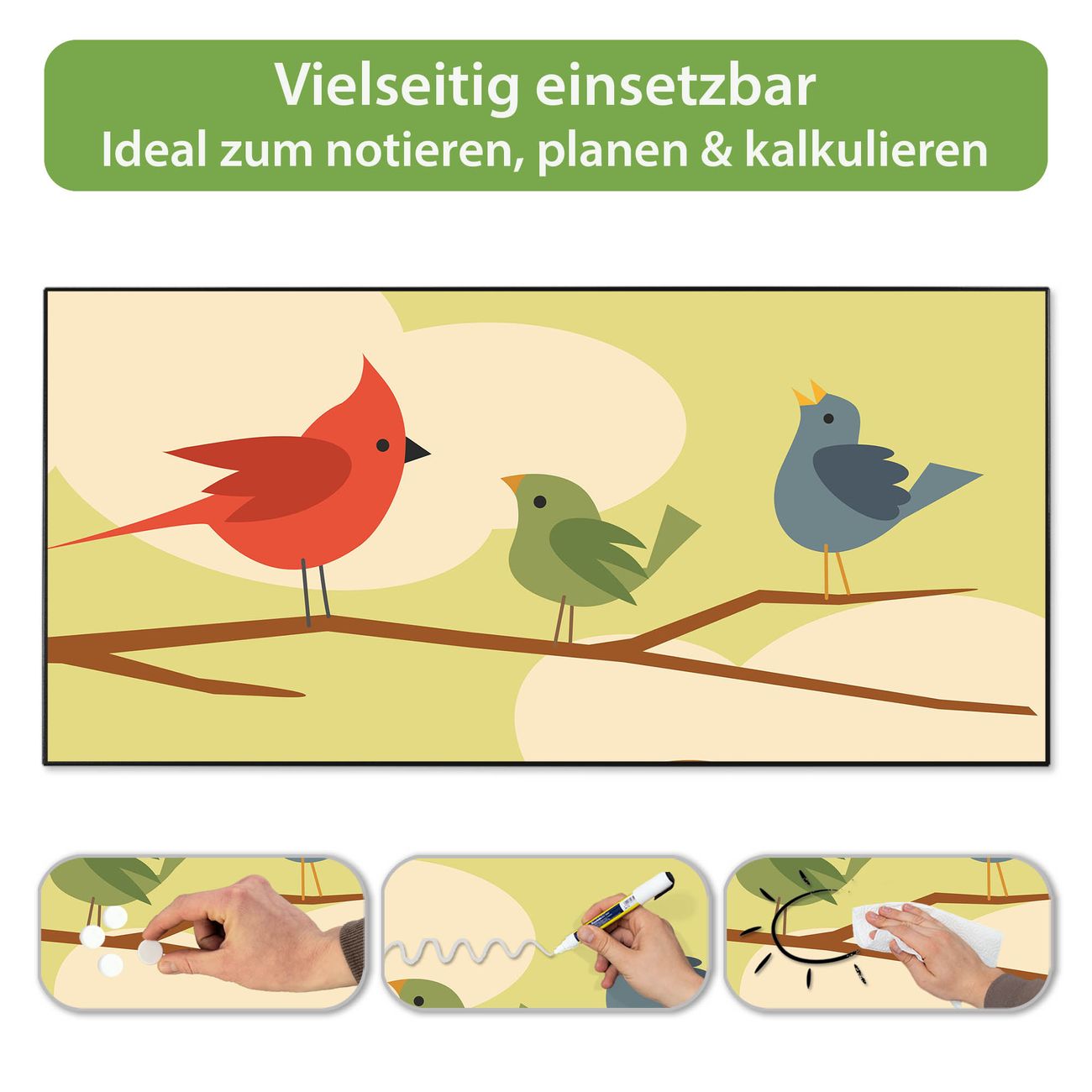 Metall Magnettafel beschreibbar 78x37cm Motiv Fünf Vögel