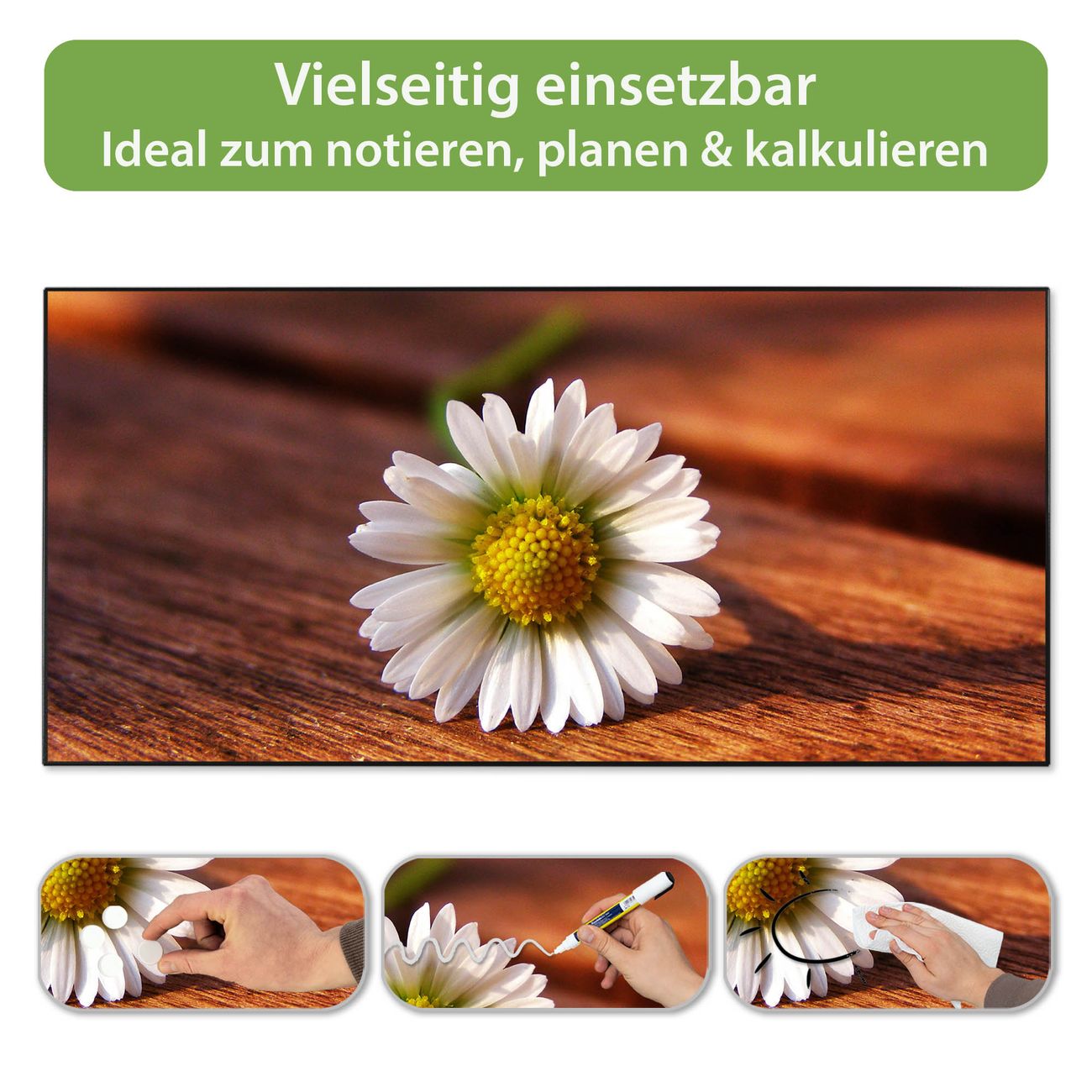 Metall Magnettafel beschreibbar 78x37cm Motiv Gänseblümchen