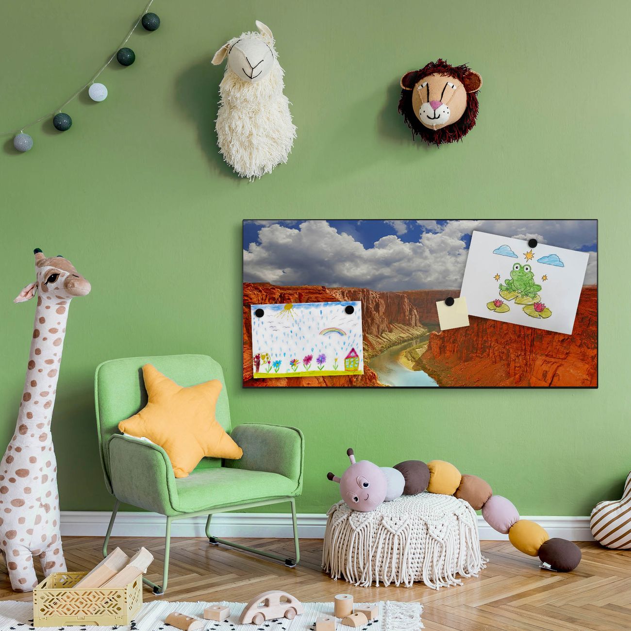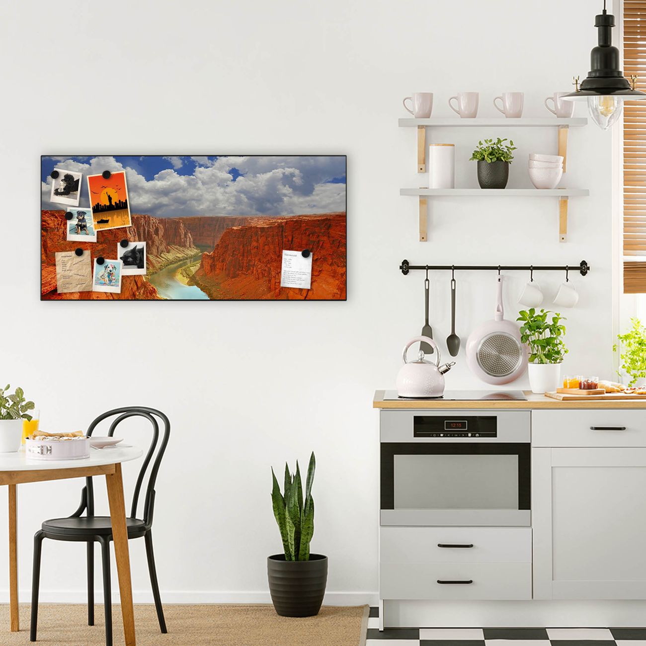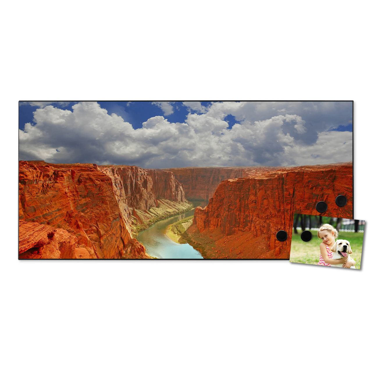 FUNKTION:  Die banjado Magnettafel mit Motiv Grand Canyon Motiv bringt Ordnung in Ihr Zettelchaos. Fotos, Termine, Notizen oder Rezepte lassen Sich hier stilvoll mit Magneten ordnen, Sie behalten alles im Blick. An der Design Magnetwand halten alle handesüblichen Magnete. DESIGN:  Die Metall Pinnwand mit dem Motiv Motiv Grand Canyon ist ein eleganter Begleiter im Alltag. Mit dieser Magnettafel haben Sie auch ohne Notizen und Magnete ein schönes Dekoelement. Das Format bietet Ihnen ausreichend Platz um alle wichtigen Informationen im Blick zu behalten. DETAILS: Die magnetische Pinnwand besteht aus silber-grau, weiß oder schwarz lackiertem Stahl. Sie hat eine Größe von 78cm x 37cm. Es befinden sich auf der Rückseite vorgefertigte Löcher die eine schnelle und unkomplizierte Anbringung ermöglichen. Das Motiv ist mit einem seidenmatten Laminat versehen und schützt so zusätzlich vor Kratzern. NUTZEN:  Sie können diese Magnettafel wunderbar als Wandbild nutzen, es halten alle handelsüblichen Magneten daran. Das Memoboard ist mit einem feuchten Lappen oder Schwamm abwischbar. Sie finden bei uns eine große Auswahl an passenden Magneten. BANJADO:  Wir sind ein kleines Team aus dem Herzen von Sachsen. Wir fertigen alle Artikel von Hand für Sie an, Sie erhalten keine preiswerte Importware. Auf Wunsch können Sie auch Ihr eigenes Foto auf die Magnettafel aufbringen, schreiben Sie uns an. Herzlichst, Ihr banjado-Team