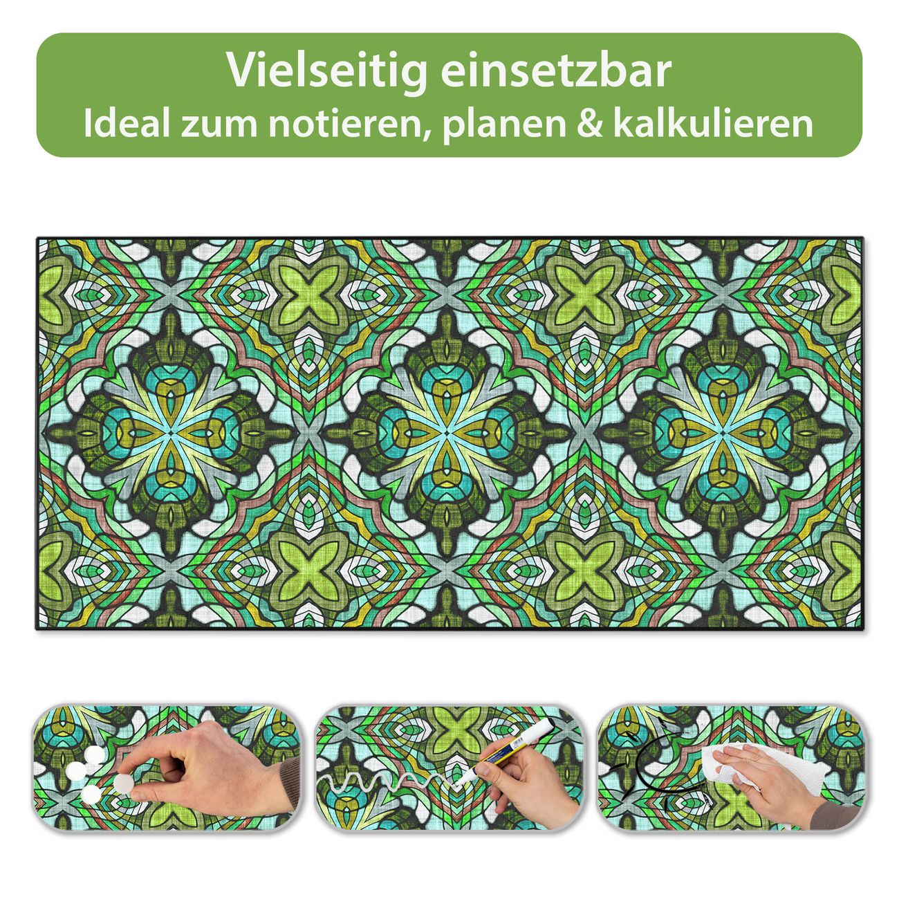 Metall Magnettafel beschreibbar 78x37cm Motiv Grünes Muster