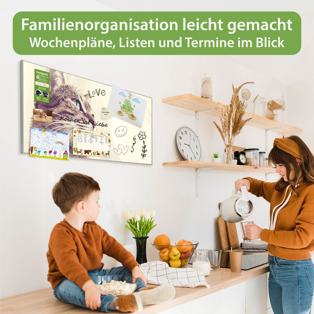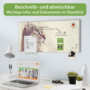FUNKTION: Die banjado Magnettafel 78x37 cm im Design Motiv Holgerson vereint Funktionalität und modernes Wohndesign auf stilvolle Weise. Diese hochwertige Magnetwand aus Metall hilft Ihnen dabei, Notizen, Fotos, Termine, Einkaufslisten oder Rezepte übersichtlich zu organisieren. Als praktisches Memoboard sorgt sie für Struktur im Alltag und setzt gleichzeitig einen dekorativen Akzent an Ihrer Wand. DESIGN: Die Metalltafel besteht aus robustem, lackiertem Stahl und ist mit allen handelsüblichen Magneten nutzbar. Besonders praktisch ist die beschreibbare Oberfläche. Sie können die Magnettafel ganz einfach mit Kreidestiften beschriften und die Inhalte bei Bedarf mit einem feuchten Tuch wieder entfernen. So eignet sich das Memoboard ideal für Wochenpläne, Menüpläne, To Do Listen oder kreative Botschaften. DETAILS: Mit ihrem großzügigen Querformat von 78x37 cm bietet die Magnettafel ausreichend Platz für Ihre Organisation. Das Motiv Motiv Holgerson bringt eine warme, natürliche Optik in Küche, Flur, Büro oder Homeoffice und wirkt auch ohne Magnete oder Beschriftung wie ein modernes Wandbild. NUTZEN: Auf der Rückseite befinden sich vorgefertigte Löcher für eine schnelle und unkomplizierte Wandmontage. Jede banjado Magnettafel wird in Deutschland gefertigt und steht für Qualität, Langlebigkeit und liebevolle Verarbeitung. Dieses beschreibbare Memoboard ist die perfekte Kombination aus Metalltafel, Designobjekt und praktischer Magnetwand für Ihren Alltag. BANJADO: Wir sind ein kleines Team aus dem Herzen von Sachsen. Wir fertigen alle Artikel von Hand für Sie an, Sie erhalten keine preiswerte Importware. Auf Wunsch können Sie auch Ihr eigenes Foto auf die Magnettafel aufbringen, schreiben Sie uns an. Herzlichst, Ihr banjado-Team