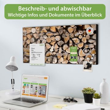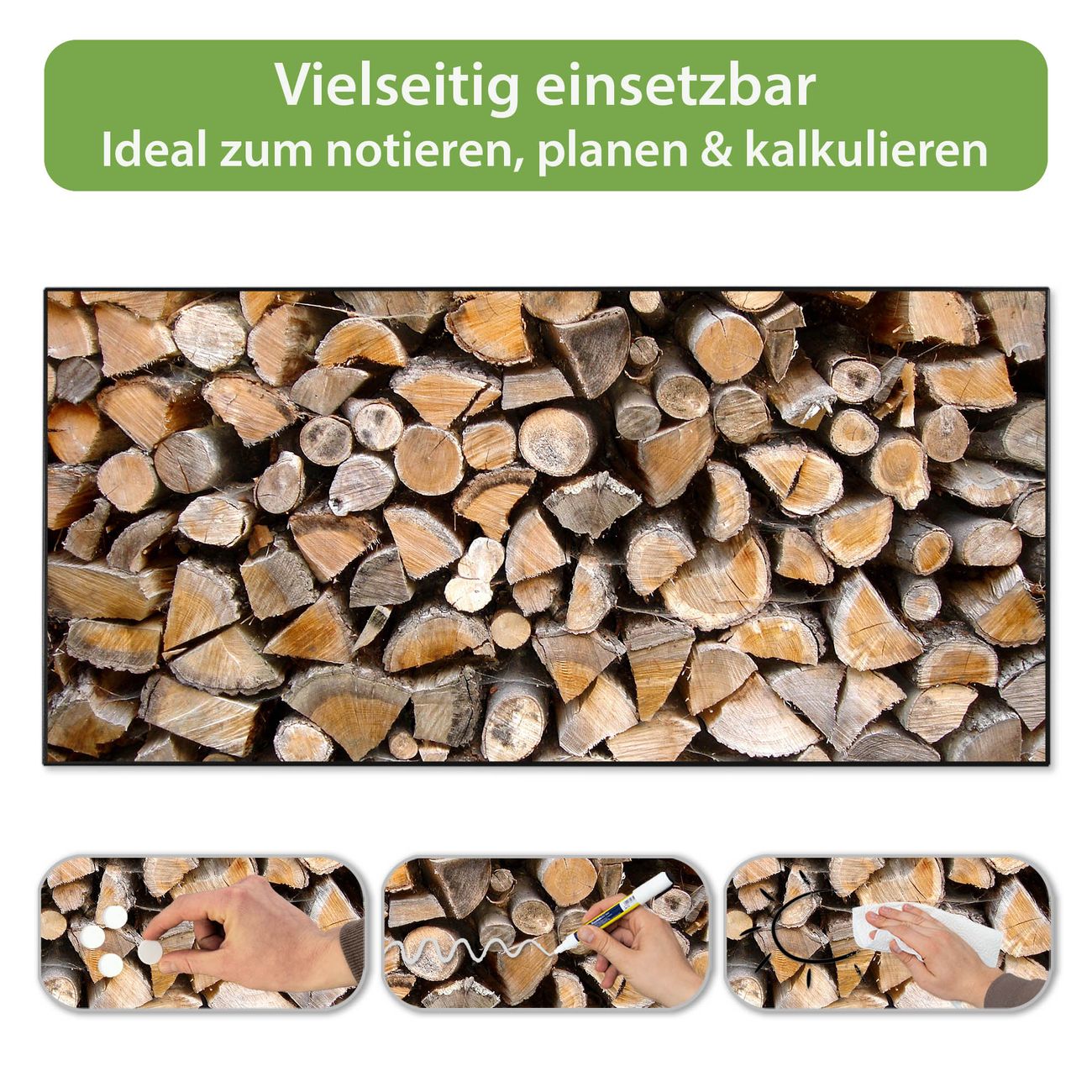 Metall Magnettafel beschreibbar 78x37cm Motiv Holzstapel