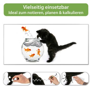 Metall Magnettafel beschreibbar 78x37cm Motiv Katze Und Fisch