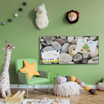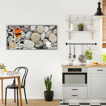 FUNKTION:  Die banjado Magnettafel mit Motiv Kieselsteine Motiv bringt Ordnung in Ihr Zettelchaos. Fotos, Termine, Notizen oder Rezepte lassen Sich hier stilvoll mit Magneten ordnen, Sie behalten alles im Blick. An der Design Magnetwand halten alle handesüblichen Magnete. DESIGN:  Die Metall Pinnwand mit dem Motiv Motiv Kieselsteine ist ein eleganter Begleiter im Alltag. Mit dieser Magnettafel haben Sie auch ohne Notizen und Magnete ein schönes Dekoelement. Das Format bietet Ihnen ausreichend Platz um alle wichtigen Informationen im Blick zu behalten. DETAILS: Die magnetische Pinnwand besteht aus silber-grau, weiß oder schwarz lackiertem Stahl. Sie hat eine Größe von 78cm x 37cm. Es befinden sich auf der Rückseite vorgefertigte Löcher die eine schnelle und unkomplizierte Anbringung ermöglichen. Das Motiv ist mit einem seidenmatten Laminat versehen und schützt so zusätzlich vor Kratzern. NUTZEN:  Sie können diese Magnettafel wunderbar als Wandbild nutzen, es halten alle handelsüblichen Magneten daran. Das Memoboard ist mit einem feuchten Lappen oder Schwamm abwischbar. Sie finden bei uns eine große Auswahl an passenden Magneten. BANJADO:  Wir sind ein kleines Team aus dem Herzen von Sachsen. Wir fertigen alle Artikel von Hand für Sie an, Sie erhalten keine preiswerte Importware. Auf Wunsch können Sie auch Ihr eigenes Foto auf die Magnettafel aufbringen, schreiben Sie uns an. Herzlichst, Ihr banjado-Team