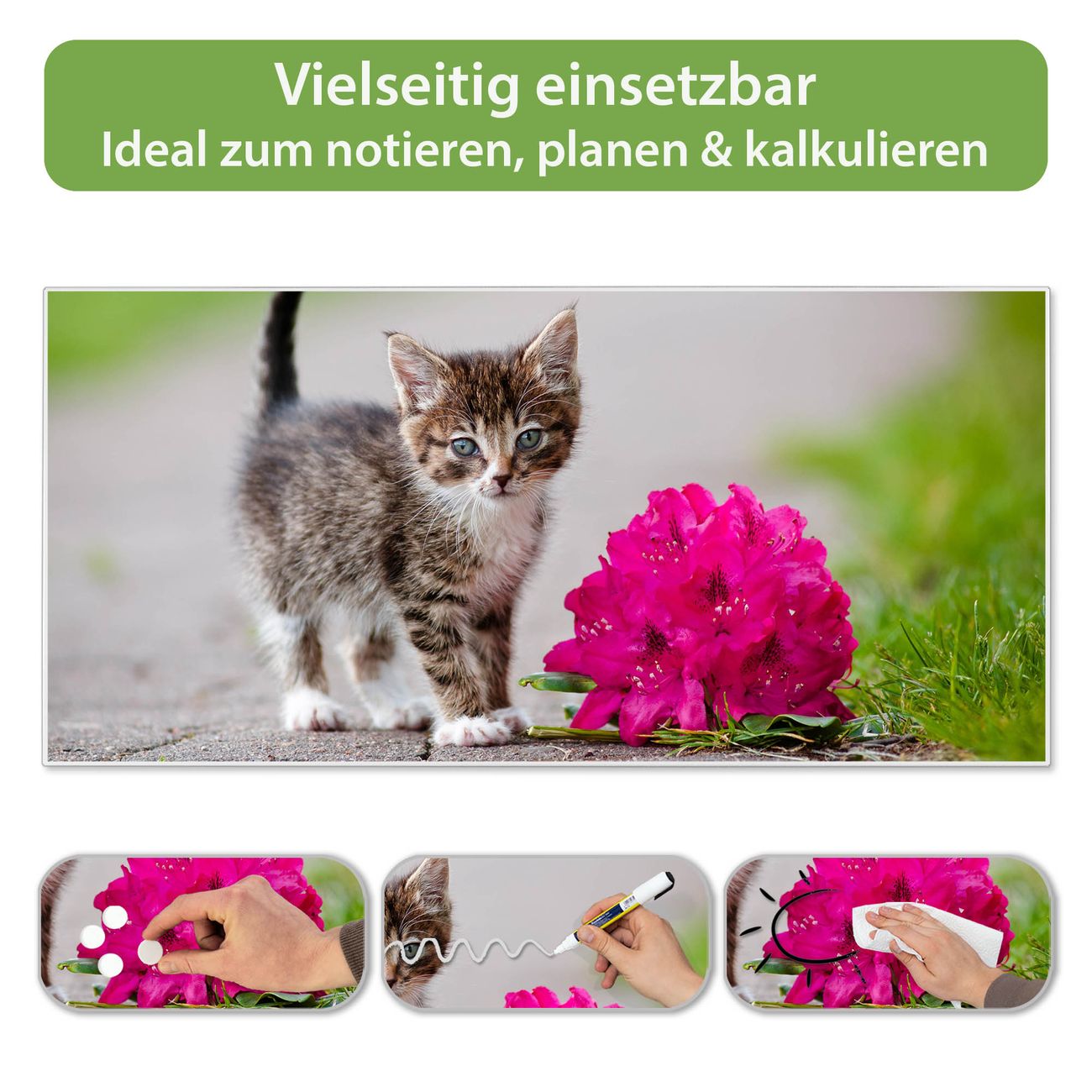 FUNKTION: Die banjado Magnettafel 78x37 cm im Design Motiv Knut vereint Funktionalität und modernes Wohndesign auf stilvolle Weise. Diese hochwertige Magnetwand aus Metall hilft Ihnen dabei, Notizen, Fotos, Termine, Einkaufslisten oder Rezepte übersichtlich zu organisieren. Als praktisches Memoboard sorgt sie für Struktur im Alltag und setzt gleichzeitig einen dekorativen Akzent an Ihrer Wand. DESIGN: Die Metalltafel besteht aus robustem, lackiertem Stahl und ist mit allen handelsüblichen Magneten nutzbar. Besonders praktisch ist die beschreibbare Oberfläche. Sie können die Magnettafel ganz einfach mit Kreidestiften beschriften und die Inhalte bei Bedarf mit einem feuchten Tuch wieder entfernen. So eignet sich das Memoboard ideal für Wochenpläne, Menüpläne, To Do Listen oder kreative Botschaften. DETAILS: Mit ihrem großzügigen Querformat von 78x37 cm bietet die Magnettafel ausreichend Platz für Ihre Organisation. Das Motiv Motiv Knut bringt eine warme, natürliche Optik in Küche, Flur, Büro oder Homeoffice und wirkt auch ohne Magnete oder Beschriftung wie ein modernes Wandbild. NUTZEN: Auf der Rückseite befinden sich vorgefertigte Löcher für eine schnelle und unkomplizierte Wandmontage. Jede banjado Magnettafel wird in Deutschland gefertigt und steht für Qualität, Langlebigkeit und liebevolle Verarbeitung. Dieses beschreibbare Memoboard ist die perfekte Kombination aus Metalltafel, Designobjekt und praktischer Magnetwand für Ihren Alltag. BANJADO: Wir sind ein kleines Team aus dem Herzen von Sachsen. Wir fertigen alle Artikel von Hand für Sie an, Sie erhalten keine preiswerte Importware. Auf Wunsch können Sie auch Ihr eigenes Foto auf die Magnettafel aufbringen, schreiben Sie uns an. Herzlichst, Ihr banjado-Team