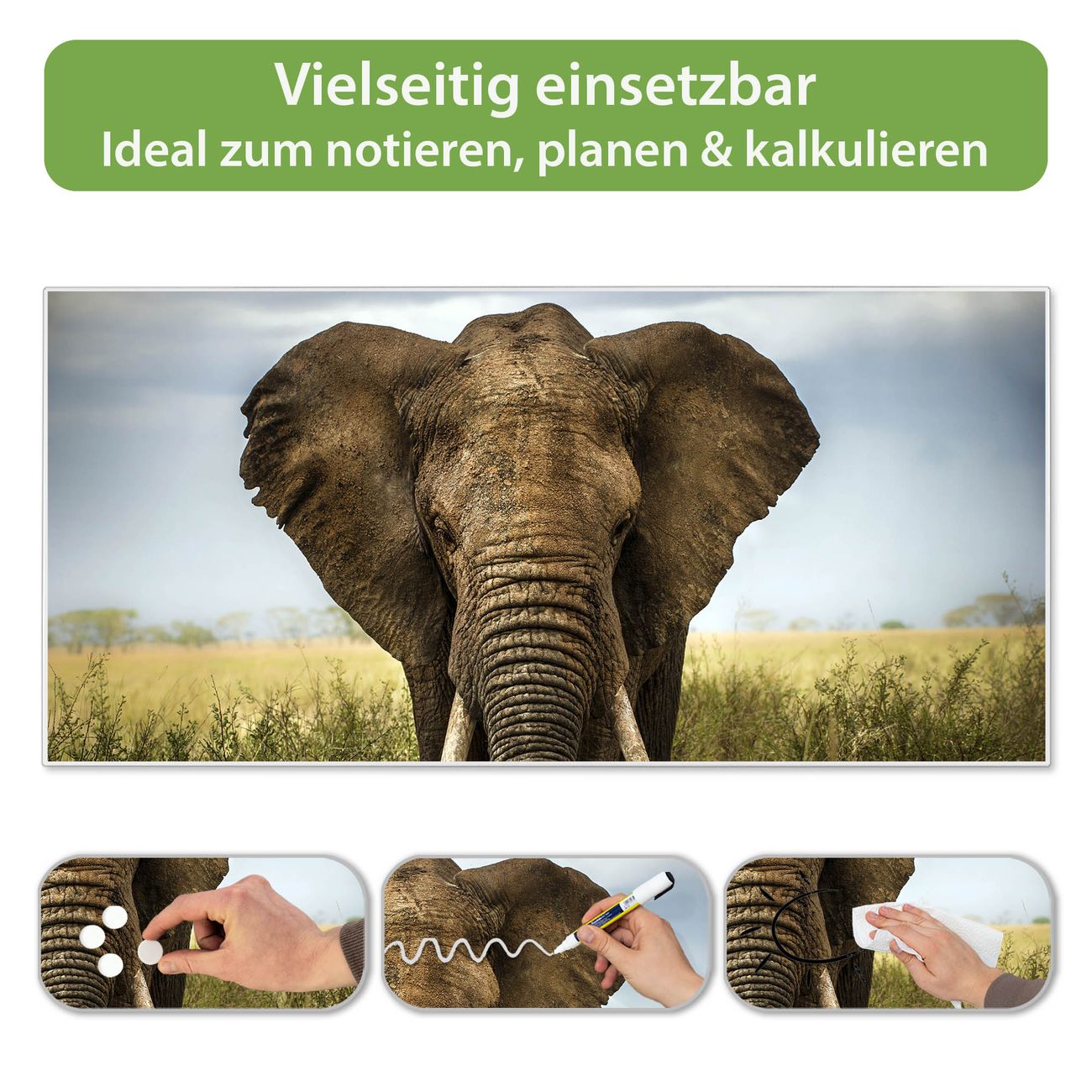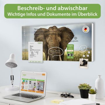 FUNKTION: Die banjado Magnettafel 78x37 cm im Design Motiv Korbinian vereint Funktionalität und modernes Wohndesign auf stilvolle Weise. Diese hochwertige Magnetwand aus Metall hilft Ihnen dabei, Notizen, Fotos, Termine, Einkaufslisten oder Rezepte übersichtlich zu organisieren. Als praktisches Memoboard sorgt sie für Struktur im Alltag und setzt gleichzeitig einen dekorativen Akzent an Ihrer Wand. DESIGN: Die Metalltafel besteht aus robustem, lackiertem Stahl und ist mit allen handelsüblichen Magneten nutzbar. Besonders praktisch ist die beschreibbare Oberfläche. Sie können die Magnettafel ganz einfach mit Kreidestiften beschriften und die Inhalte bei Bedarf mit einem feuchten Tuch wieder entfernen. So eignet sich das Memoboard ideal für Wochenpläne, Menüpläne, To Do Listen oder kreative Botschaften. DETAILS: Mit ihrem großzügigen Querformat von 78x37 cm bietet die Magnettafel ausreichend Platz für Ihre Organisation. Das Motiv Motiv Korbinian bringt eine warme, natürliche Optik in Küche, Flur, Büro oder Homeoffice und wirkt auch ohne Magnete oder Beschriftung wie ein modernes Wandbild. NUTZEN: Auf der Rückseite befinden sich vorgefertigte Löcher für eine schnelle und unkomplizierte Wandmontage. Jede banjado Magnettafel wird in Deutschland gefertigt und steht für Qualität, Langlebigkeit und liebevolle Verarbeitung. Dieses beschreibbare Memoboard ist die perfekte Kombination aus Metalltafel, Designobjekt und praktischer Magnetwand für Ihren Alltag. BANJADO: Wir sind ein kleines Team aus dem Herzen von Sachsen. Wir fertigen alle Artikel von Hand für Sie an, Sie erhalten keine preiswerte Importware. Auf Wunsch können Sie auch Ihr eigenes Foto auf die Magnettafel aufbringen, schreiben Sie uns an. Herzlichst, Ihr banjado-Team