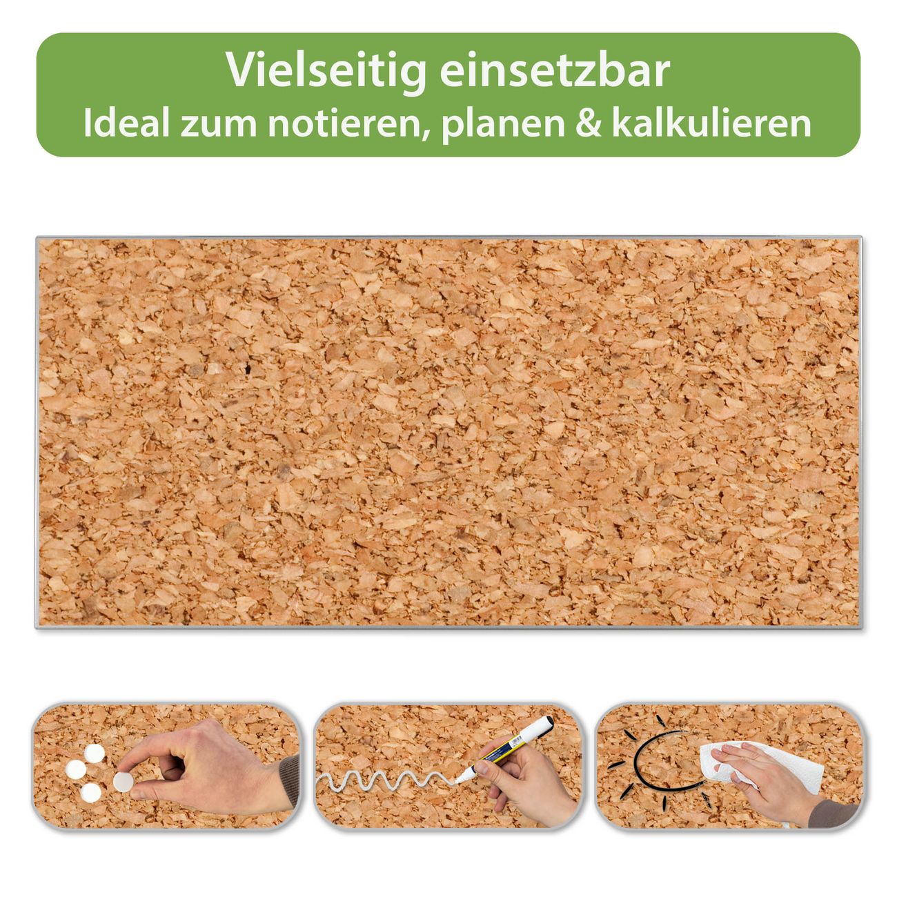 Metall Magnettafel beschreibbar 78x37cm Motiv Kork