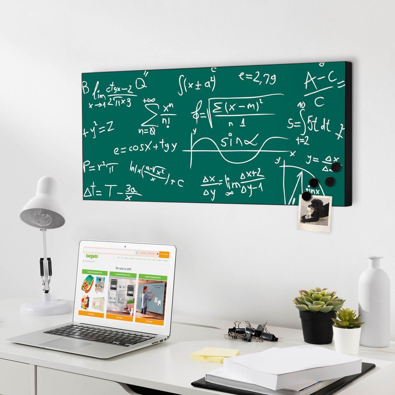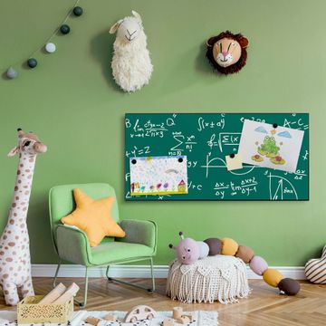 FUNKTION:  Die banjado Magnettafel mit Motiv Kreidetafel Motiv bringt Ordnung in Ihr Zettelchaos. Fotos, Termine, Notizen oder Rezepte lassen Sich hier stilvoll mit Magneten ordnen, Sie behalten alles im Blick. An der Design Magnetwand halten alle handesüblichen Magnete. DESIGN:  Die Metall Pinnwand mit dem Motiv Motiv Kreidetafel ist ein eleganter Begleiter im Alltag. Mit dieser Magnettafel haben Sie auch ohne Notizen und Magnete ein schönes Dekoelement. Das Format bietet Ihnen ausreichend Platz um alle wichtigen Informationen im Blick zu behalten. DETAILS: Die magnetische Pinnwand besteht aus silber-grau, weiß oder schwarz lackiertem Stahl. Sie hat eine Größe von 78cm x 37cm. Es befinden sich auf der Rückseite vorgefertigte Löcher die eine schnelle und unkomplizierte Anbringung ermöglichen. Das Motiv ist mit einem seidenmatten Laminat versehen und schützt so zusätzlich vor Kratzern. NUTZEN:  Sie können diese Magnettafel wunderbar als Wandbild nutzen, es halten alle handelsüblichen Magneten daran. Das Memoboard ist mit einem feuchten Lappen oder Schwamm abwischbar. Sie finden bei uns eine große Auswahl an passenden Magneten. BANJADO:  Wir sind ein kleines Team aus dem Herzen von Sachsen. Wir fertigen alle Artikel von Hand für Sie an, Sie erhalten keine preiswerte Importware. Auf Wunsch können Sie auch Ihr eigenes Foto auf die Magnettafel aufbringen, schreiben Sie uns an. Herzlichst, Ihr banjado-Team