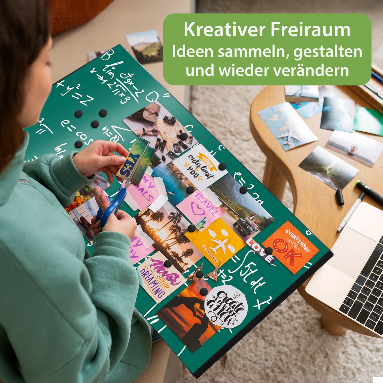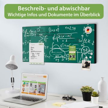 FUNKTION: Die banjado Magnettafel 78x37 cm im Design Motiv Kreidetafel vereint Funktionalität und modernes Wohndesign auf stilvolle Weise. Diese hochwertige Magnetwand aus Metall hilft Ihnen dabei, Notizen, Fotos, Termine, Einkaufslisten oder Rezepte übersichtlich zu organisieren. Als praktisches Memoboard sorgt sie für Struktur im Alltag und setzt gleichzeitig einen dekorativen Akzent an Ihrer Wand. DESIGN: Die Metalltafel besteht aus robustem, lackiertem Stahl und ist mit allen handelsüblichen Magneten nutzbar. Besonders praktisch ist die beschreibbare Oberfläche. Sie können die Magnettafel ganz einfach mit Kreidestiften beschriften und die Inhalte bei Bedarf mit einem feuchten Tuch wieder entfernen. So eignet sich das Memoboard ideal für Wochenpläne, Menüpläne, To Do Listen oder kreative Botschaften. DETAILS: Mit ihrem großzügigen Querformat von 78x37 cm bietet die Magnettafel ausreichend Platz für Ihre Organisation. Das Motiv Motiv Kreidetafel bringt eine warme, natürliche Optik in Küche, Flur, Büro oder Homeoffice und wirkt auch ohne Magnete oder Beschriftung wie ein modernes Wandbild. NUTZEN: Auf der Rückseite befinden sich vorgefertigte Löcher für eine schnelle und unkomplizierte Wandmontage. Jede banjado Magnettafel wird in Deutschland gefertigt und steht für Qualität, Langlebigkeit und liebevolle Verarbeitung. Dieses beschreibbare Memoboard ist die perfekte Kombination aus Metalltafel, Designobjekt und praktischer Magnetwand für Ihren Alltag. BANJADO: Wir sind ein kleines Team aus dem Herzen von Sachsen. Wir fertigen alle Artikel von Hand für Sie an, Sie erhalten keine preiswerte Importware. Auf Wunsch können Sie auch Ihr eigenes Foto auf die Magnettafel aufbringen, schreiben Sie uns an. Herzlichst, Ihr banjado-Team