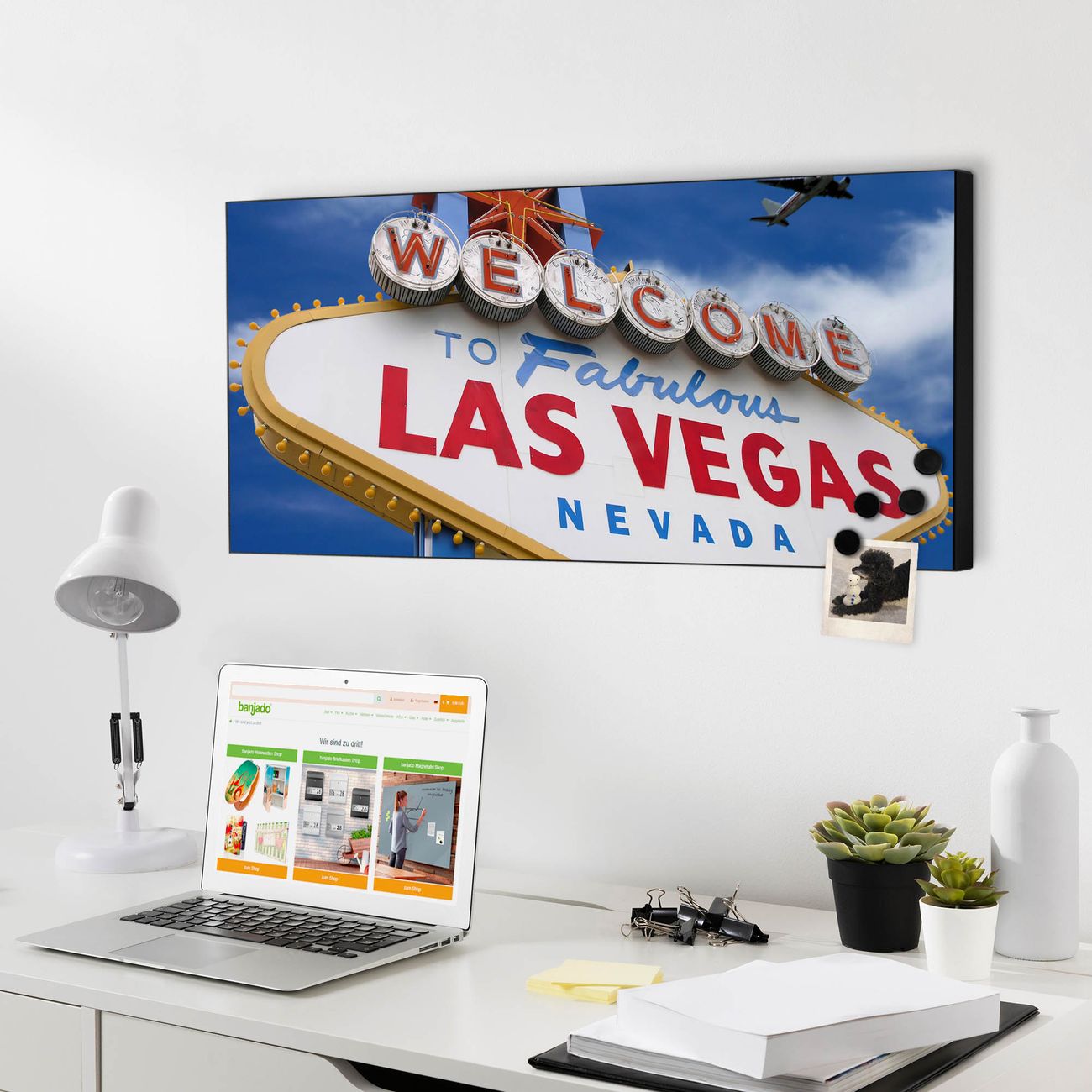 FUNKTION:  Die banjado Magnettafel mit Motiv Las Vegas Motiv bringt Ordnung in Ihr Zettelchaos. Fotos, Termine, Notizen oder Rezepte lassen Sich hier stilvoll mit Magneten ordnen, Sie behalten alles im Blick. An der Design Magnetwand halten alle handesüblichen Magnete. DESIGN:  Die Metall Pinnwand mit dem Motiv Motiv Las Vegas ist ein eleganter Begleiter im Alltag. Mit dieser Magnettafel haben Sie auch ohne Notizen und Magnete ein schönes Dekoelement. Das Format bietet Ihnen ausreichend Platz um alle wichtigen Informationen im Blick zu behalten. DETAILS: Die magnetische Pinnwand besteht aus silber-grau, weiß oder schwarz lackiertem Stahl. Sie hat eine Größe von 78cm x 37cm. Es befinden sich auf der Rückseite vorgefertigte Löcher die eine schnelle und unkomplizierte Anbringung ermöglichen. Das Motiv ist mit einem seidenmatten Laminat versehen und schützt so zusätzlich vor Kratzern. NUTZEN:  Sie können diese Magnettafel wunderbar als Wandbild nutzen, es halten alle handelsüblichen Magneten daran. Das Memoboard ist mit einem feuchten Lappen oder Schwamm abwischbar. Sie finden bei uns eine große Auswahl an passenden Magneten. BANJADO:  Wir sind ein kleines Team aus dem Herzen von Sachsen. Wir fertigen alle Artikel von Hand für Sie an, Sie erhalten keine preiswerte Importware. Auf Wunsch können Sie auch Ihr eigenes Foto auf die Magnettafel aufbringen, schreiben Sie uns an. Herzlichst, Ihr banjado-Team