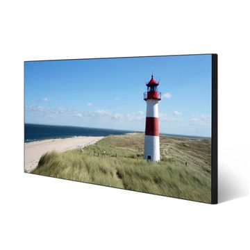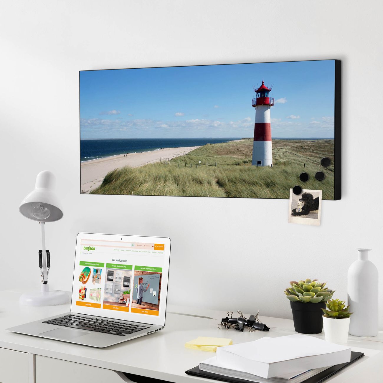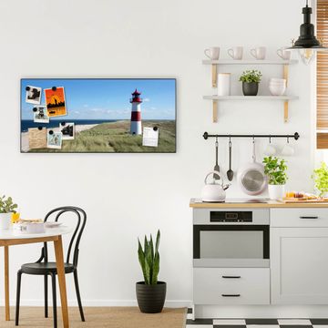 FUNKTION:  Die banjado Magnettafel mit Motiv Leuchtturm Motiv bringt Ordnung in Ihr Zettelchaos. Fotos, Termine, Notizen oder Rezepte lassen Sich hier stilvoll mit Magneten ordnen, Sie behalten alles im Blick. An der Design Magnetwand halten alle handesüblichen Magnete. DESIGN:  Die Metall Pinnwand mit dem Motiv Motiv Leuchtturm ist ein eleganter Begleiter im Alltag. Mit dieser Magnettafel haben Sie auch ohne Notizen und Magnete ein schönes Dekoelement. Das Format bietet Ihnen ausreichend Platz um alle wichtigen Informationen im Blick zu behalten. DETAILS: Die magnetische Pinnwand besteht aus silber-grau, weiß oder schwarz lackiertem Stahl. Sie hat eine Größe von 78cm x 37cm. Es befinden sich auf der Rückseite vorgefertigte Löcher die eine schnelle und unkomplizierte Anbringung ermöglichen. Das Motiv ist mit einem seidenmatten Laminat versehen und schützt so zusätzlich vor Kratzern. NUTZEN:  Sie können diese Magnettafel wunderbar als Wandbild nutzen, es halten alle handelsüblichen Magneten daran. Das Memoboard ist mit einem feuchten Lappen oder Schwamm abwischbar. Sie finden bei uns eine große Auswahl an passenden Magneten. BANJADO:  Wir sind ein kleines Team aus dem Herzen von Sachsen. Wir fertigen alle Artikel von Hand für Sie an, Sie erhalten keine preiswerte Importware. Auf Wunsch können Sie auch Ihr eigenes Foto auf die Magnettafel aufbringen, schreiben Sie uns an. Herzlichst, Ihr banjado-Team
