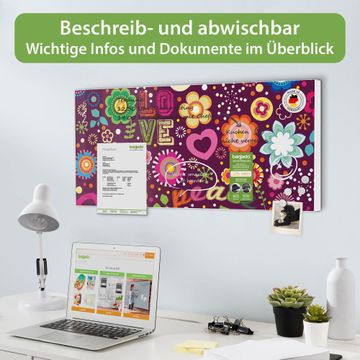 Metall Magnettafel beschreibbar 78x37cm Motiv Love and Peace