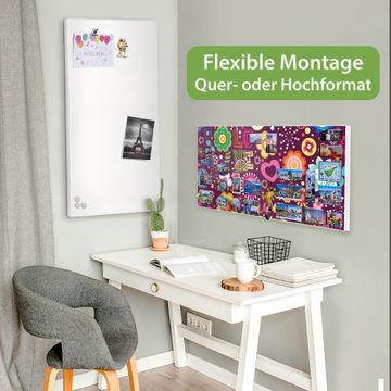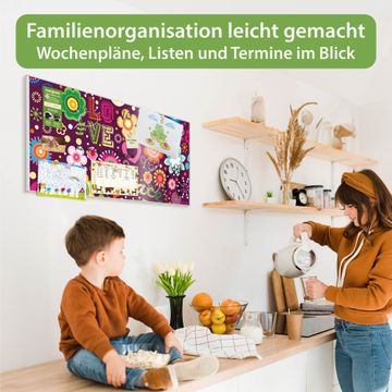 FUNKTION: Die banjado Magnettafel 78x37 cm im Design Motiv Love and Peace vereint Funktionalität und modernes Wohndesign auf stilvolle Weise. Diese hochwertige Magnetwand aus Metall hilft Ihnen dabei, Notizen, Fotos, Termine, Einkaufslisten oder Rezepte übersichtlich zu organisieren. Als praktisches Memoboard sorgt sie für Struktur im Alltag und setzt gleichzeitig einen dekorativen Akzent an Ihrer Wand. DESIGN: Die Metalltafel besteht aus robustem, lackiertem Stahl und ist mit allen handelsüblichen Magneten nutzbar. Besonders praktisch ist die beschreibbare Oberfläche. Sie können die Magnettafel ganz einfach mit Kreidestiften beschriften und die Inhalte bei Bedarf mit einem feuchten Tuch wieder entfernen. So eignet sich das Memoboard ideal für Wochenpläne, Menüpläne, To Do Listen oder kreative Botschaften. DETAILS: Mit ihrem großzügigen Querformat von 78x37 cm bietet die Magnettafel ausreichend Platz für Ihre Organisation. Das Motiv Motiv Love and Peace bringt eine warme, natürliche Optik in Küche, Flur, Büro oder Homeoffice und wirkt auch ohne Magnete oder Beschriftung wie ein modernes Wandbild. NUTZEN: Auf der Rückseite befinden sich vorgefertigte Löcher für eine schnelle und unkomplizierte Wandmontage. Jede banjado Magnettafel wird in Deutschland gefertigt und steht für Qualität, Langlebigkeit und liebevolle Verarbeitung. Dieses beschreibbare Memoboard ist die perfekte Kombination aus Metalltafel, Designobjekt und praktischer Magnetwand für Ihren Alltag. BANJADO: Wir sind ein kleines Team aus dem Herzen von Sachsen. Wir fertigen alle Artikel von Hand für Sie an, Sie erhalten keine preiswerte Importware. Auf Wunsch können Sie auch Ihr eigenes Foto auf die Magnettafel aufbringen, schreiben Sie uns an. Herzlichst, Ihr banjado-Team