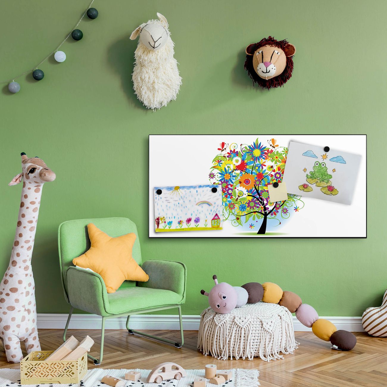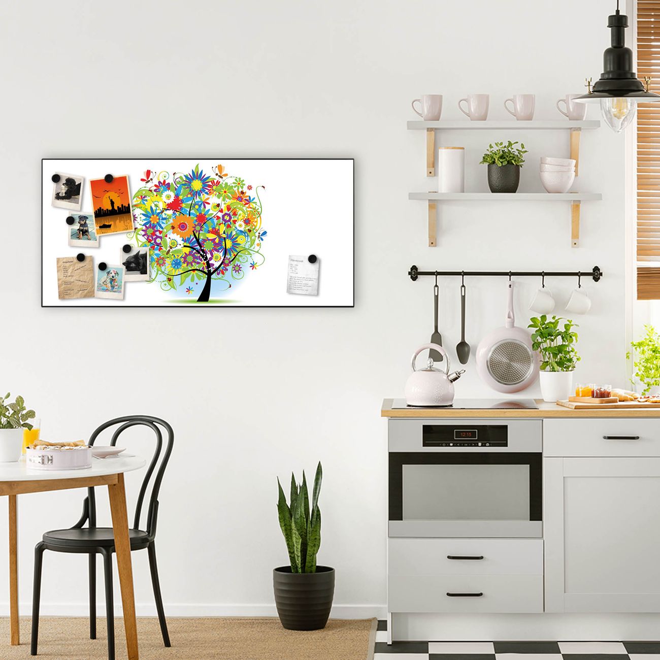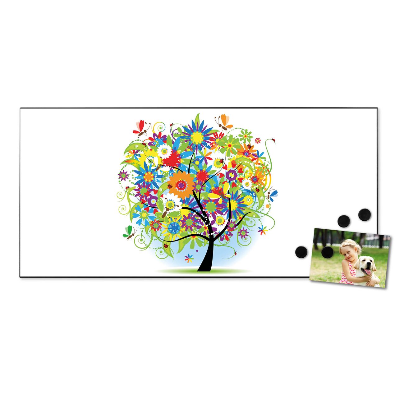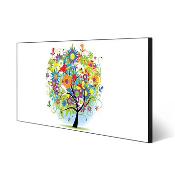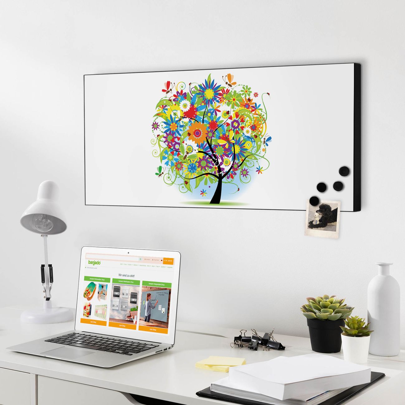 FUNKTION:  Die banjado Magnettafel mit Motiv Märchenzauberbaum Motiv bringt Ordnung in Ihr Zettelchaos. Fotos, Termine, Notizen oder Rezepte lassen Sich hier stilvoll mit Magneten ordnen, Sie behalten alles im Blick. An der Design Magnetwand halten alle handesüblichen Magnete. DESIGN:  Die Metall Pinnwand mit dem Motiv Motiv Märchenzauberbaum ist ein eleganter Begleiter im Alltag. Mit dieser Magnettafel haben Sie auch ohne Notizen und Magnete ein schönes Dekoelement. Das Format bietet Ihnen ausreichend Platz um alle wichtigen Informationen im Blick zu behalten. DETAILS: Die magnetische Pinnwand besteht aus silber-grau, weiß oder schwarz lackiertem Stahl. Sie hat eine Größe von 78cm x 37cm. Es befinden sich auf der Rückseite vorgefertigte Löcher die eine schnelle und unkomplizierte Anbringung ermöglichen. Das Motiv ist mit einem seidenmatten Laminat versehen und schützt so zusätzlich vor Kratzern. NUTZEN:  Sie können diese Magnettafel wunderbar als Wandbild nutzen, es halten alle handelsüblichen Magneten daran. Das Memoboard ist mit einem feuchten Lappen oder Schwamm abwischbar. Sie finden bei uns eine große Auswahl an passenden Magneten. BANJADO:  Wir sind ein kleines Team aus dem Herzen von Sachsen. Wir fertigen alle Artikel von Hand für Sie an, Sie erhalten keine preiswerte Importware. Auf Wunsch können Sie auch Ihr eigenes Foto auf die Magnettafel aufbringen, schreiben Sie uns an. Herzlichst, Ihr banjado-Team