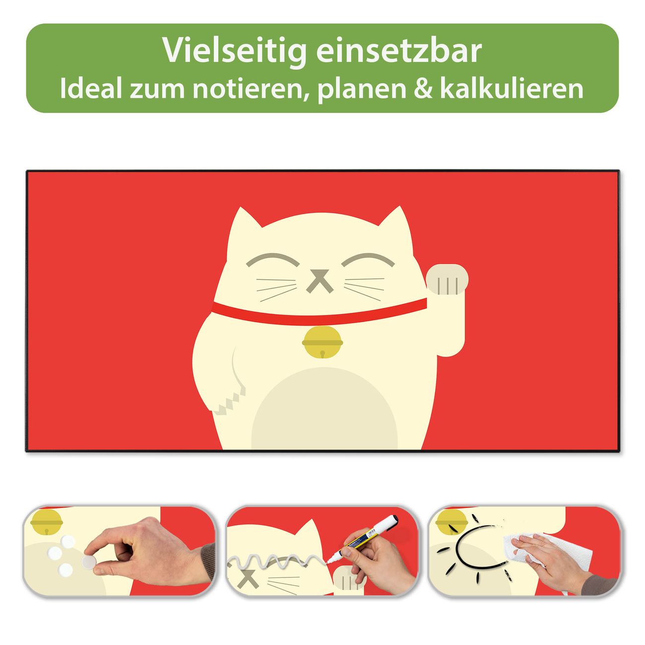 Metall Magnettafel beschreibbar 78x37cm Motiv Manekineko