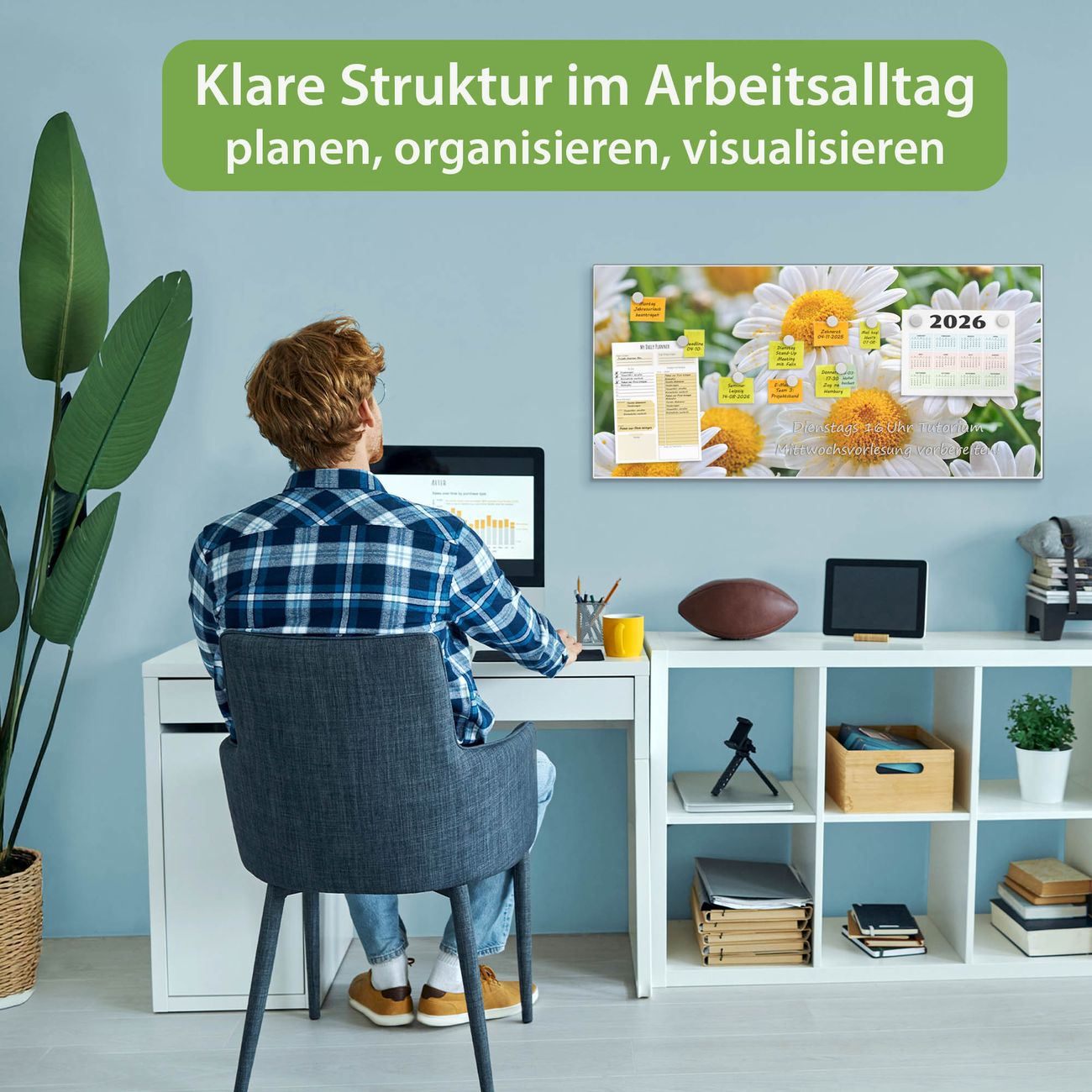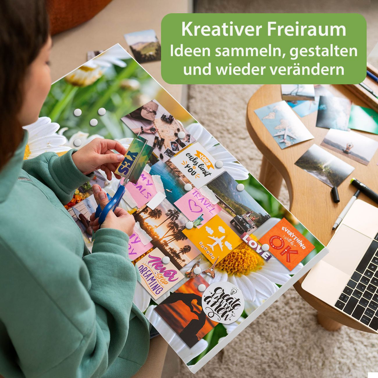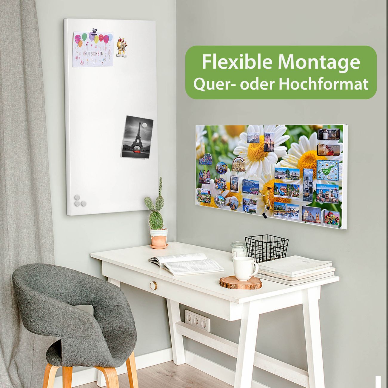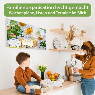 FUNKTION: Die banjado Magnettafel 78x37 cm im Design Motiv Margeriten Illustration vereint Funktionalität und modernes Wohndesign auf stilvolle Weise. Diese hochwertige Magnetwand aus Metall hilft Ihnen dabei, Notizen, Fotos, Termine, Einkaufslisten oder Rezepte übersichtlich zu organisieren. Als praktisches Memoboard sorgt sie für Struktur im Alltag und setzt gleichzeitig einen dekorativen Akzent an Ihrer Wand. DESIGN: Die Metalltafel besteht aus robustem, lackiertem Stahl und ist mit allen handelsüblichen Magneten nutzbar. Besonders praktisch ist die beschreibbare Oberfläche. Sie können die Magnettafel ganz einfach mit Kreidestiften beschriften und die Inhalte bei Bedarf mit einem feuchten Tuch wieder entfernen. So eignet sich das Memoboard ideal für Wochenpläne, Menüpläne, To Do Listen oder kreative Botschaften. DETAILS: Mit ihrem großzügigen Querformat von 78x37 cm bietet die Magnettafel ausreichend Platz für Ihre Organisation. Das Motiv Motiv Margeriten Illustration bringt eine warme, natürliche Optik in Küche, Flur, Büro oder Homeoffice und wirkt auch ohne Magnete oder Beschriftung wie ein modernes Wandbild. NUTZEN: Auf der Rückseite befinden sich vorgefertigte Löcher für eine schnelle und unkomplizierte Wandmontage. Jede banjado Magnettafel wird in Deutschland gefertigt und steht für Qualität, Langlebigkeit und liebevolle Verarbeitung. Dieses beschreibbare Memoboard ist die perfekte Kombination aus Metalltafel, Designobjekt und praktischer Magnetwand für Ihren Alltag. BANJADO: Wir sind ein kleines Team aus dem Herzen von Sachsen. Wir fertigen alle Artikel von Hand für Sie an, Sie erhalten keine preiswerte Importware. Auf Wunsch können Sie auch Ihr eigenes Foto auf die Magnettafel aufbringen, schreiben Sie uns an. Herzlichst, Ihr banjado-Team