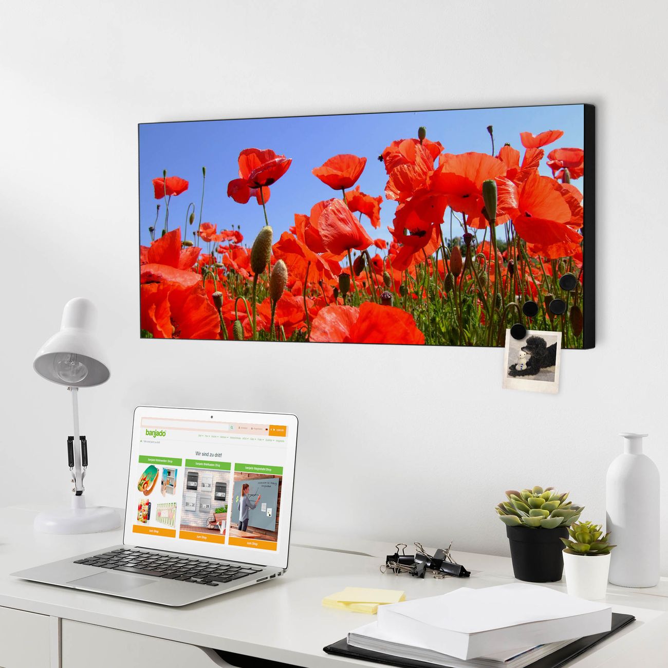 Stahl Magnettafel Querformat 37x78cm Mohnblumen
