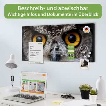 FUNKTION: Die banjado Magnettafel 78x37 cm im Design Motiv Monique vereint Funktionalität und modernes Wohndesign auf stilvolle Weise. Diese hochwertige Magnetwand aus Metall hilft Ihnen dabei, Notizen, Fotos, Termine, Einkaufslisten oder Rezepte übersichtlich zu organisieren. Als praktisches Memoboard sorgt sie für Struktur im Alltag und setzt gleichzeitig einen dekorativen Akzent an Ihrer Wand. DESIGN: Die Metalltafel besteht aus robustem, lackiertem Stahl und ist mit allen handelsüblichen Magneten nutzbar. Besonders praktisch ist die beschreibbare Oberfläche. Sie können die Magnettafel ganz einfach mit Kreidestiften beschriften und die Inhalte bei Bedarf mit einem feuchten Tuch wieder entfernen. So eignet sich das Memoboard ideal für Wochenpläne, Menüpläne, To Do Listen oder kreative Botschaften. DETAILS: Mit ihrem großzügigen Querformat von 78x37 cm bietet die Magnettafel ausreichend Platz für Ihre Organisation. Das Motiv Motiv Monique bringt eine warme, natürliche Optik in Küche, Flur, Büro oder Homeoffice und wirkt auch ohne Magnete oder Beschriftung wie ein modernes Wandbild. NUTZEN: Auf der Rückseite befinden sich vorgefertigte Löcher für eine schnelle und unkomplizierte Wandmontage. Jede banjado Magnettafel wird in Deutschland gefertigt und steht für Qualität, Langlebigkeit und liebevolle Verarbeitung. Dieses beschreibbare Memoboard ist die perfekte Kombination aus Metalltafel, Designobjekt und praktischer Magnetwand für Ihren Alltag. BANJADO: Wir sind ein kleines Team aus dem Herzen von Sachsen. Wir fertigen alle Artikel von Hand für Sie an, Sie erhalten keine preiswerte Importware. Auf Wunsch können Sie auch Ihr eigenes Foto auf die Magnettafel aufbringen, schreiben Sie uns an. Herzlichst, Ihr banjado-Team