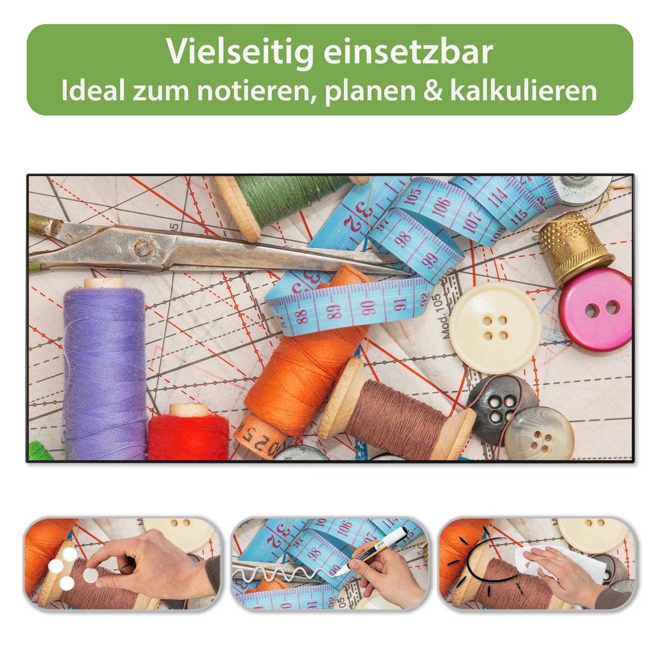 Metall Magnettafel beschreibbar 78x37cm Motiv Nähen