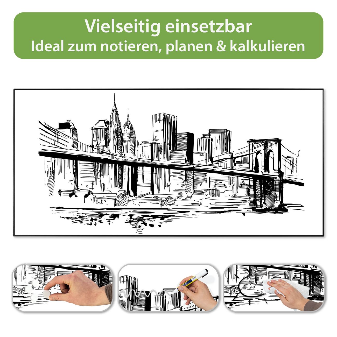Metall Magnettafel beschreibbar 78x37cm Motiv New York Skizze