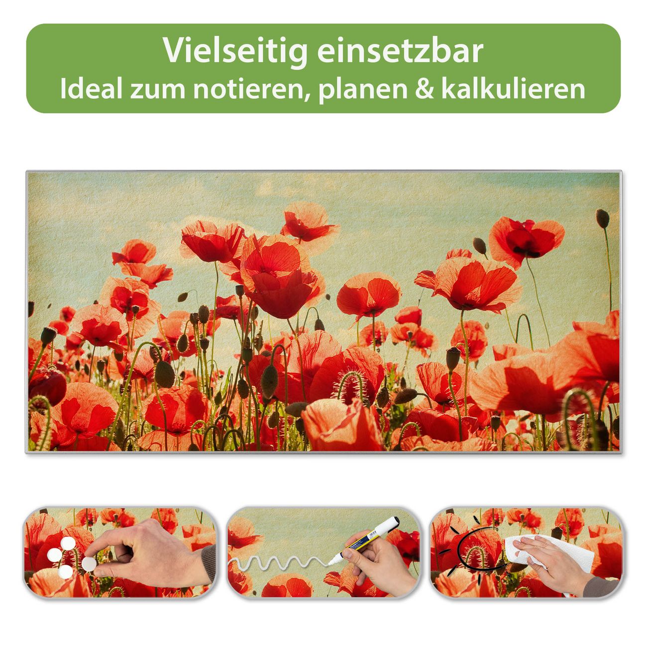 Metall Magnettafel beschreibbar 78x37cm Motiv Oktobermohn