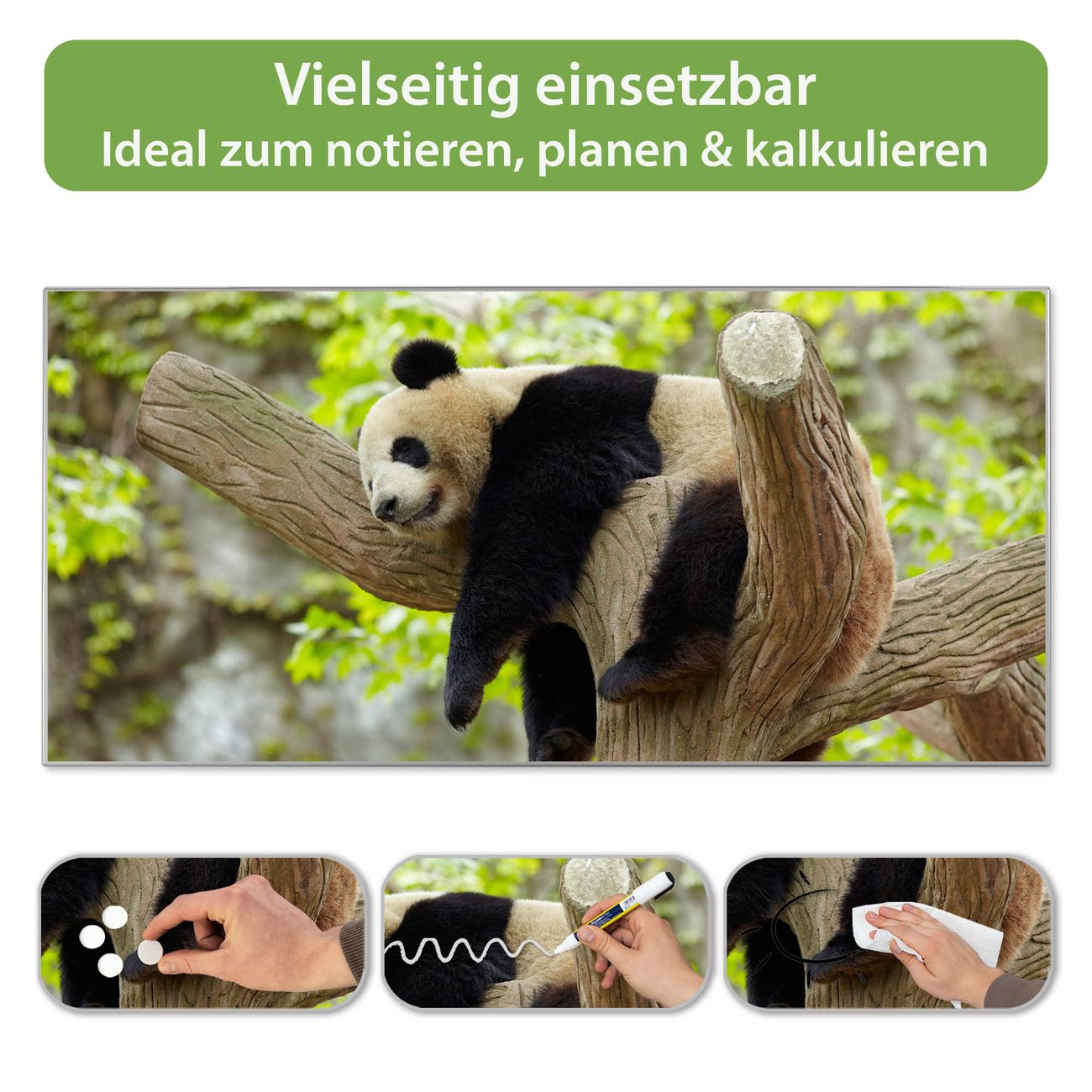 Metall Magnettafel beschreibbar 78x37cm Motiv Panda