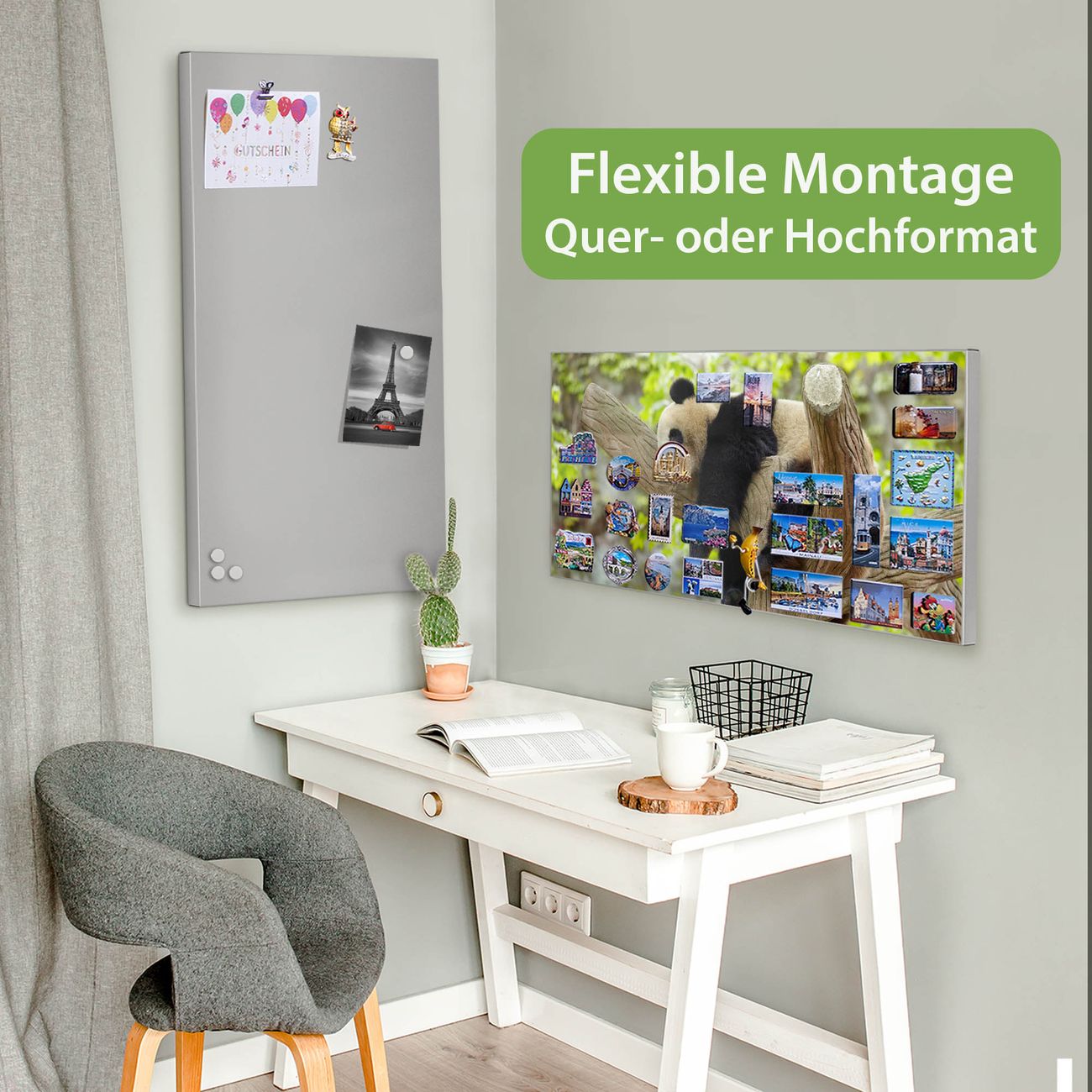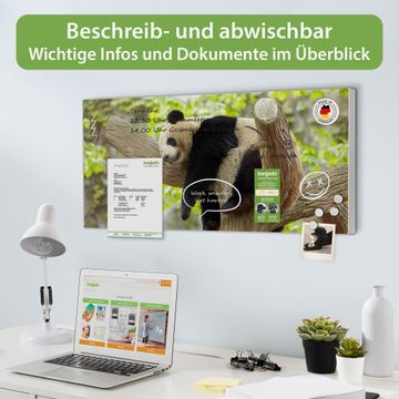 FUNKTION: Die banjado Magnettafel 78x37 cm im Design Motiv Panda vereint Funktionalität und modernes Wohndesign auf stilvolle Weise. Diese hochwertige Magnetwand aus Metall hilft Ihnen dabei, Notizen, Fotos, Termine, Einkaufslisten oder Rezepte übersichtlich zu organisieren. Als praktisches Memoboard sorgt sie für Struktur im Alltag und setzt gleichzeitig einen dekorativen Akzent an Ihrer Wand. DESIGN: Die Metalltafel besteht aus robustem, lackiertem Stahl und ist mit allen handelsüblichen Magneten nutzbar. Besonders praktisch ist die beschreibbare Oberfläche. Sie können die Magnettafel ganz einfach mit Kreidestiften beschriften und die Inhalte bei Bedarf mit einem feuchten Tuch wieder entfernen. So eignet sich das Memoboard ideal für Wochenpläne, Menüpläne, To Do Listen oder kreative Botschaften. DETAILS: Mit ihrem großzügigen Querformat von 78x37 cm bietet die Magnettafel ausreichend Platz für Ihre Organisation. Das Motiv Motiv Panda bringt eine warme, natürliche Optik in Küche, Flur, Büro oder Homeoffice und wirkt auch ohne Magnete oder Beschriftung wie ein modernes Wandbild. NUTZEN: Auf der Rückseite befinden sich vorgefertigte Löcher für eine schnelle und unkomplizierte Wandmontage. Jede banjado Magnettafel wird in Deutschland gefertigt und steht für Qualität, Langlebigkeit und liebevolle Verarbeitung. Dieses beschreibbare Memoboard ist die perfekte Kombination aus Metalltafel, Designobjekt und praktischer Magnetwand für Ihren Alltag. BANJADO: Wir sind ein kleines Team aus dem Herzen von Sachsen. Wir fertigen alle Artikel von Hand für Sie an, Sie erhalten keine preiswerte Importware. Auf Wunsch können Sie auch Ihr eigenes Foto auf die Magnettafel aufbringen, schreiben Sie uns an. Herzlichst, Ihr banjado-Team