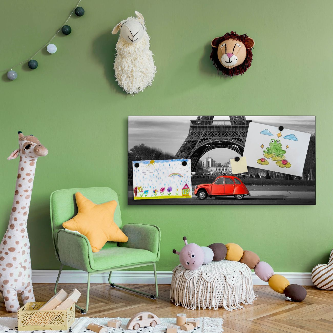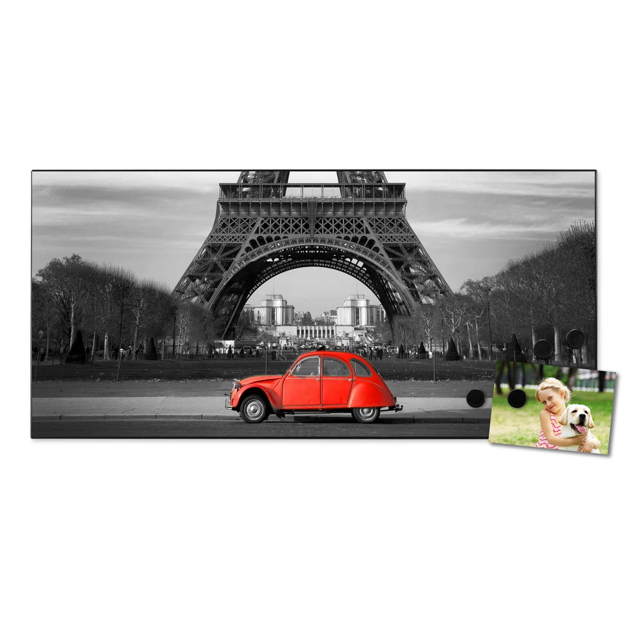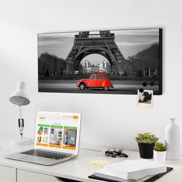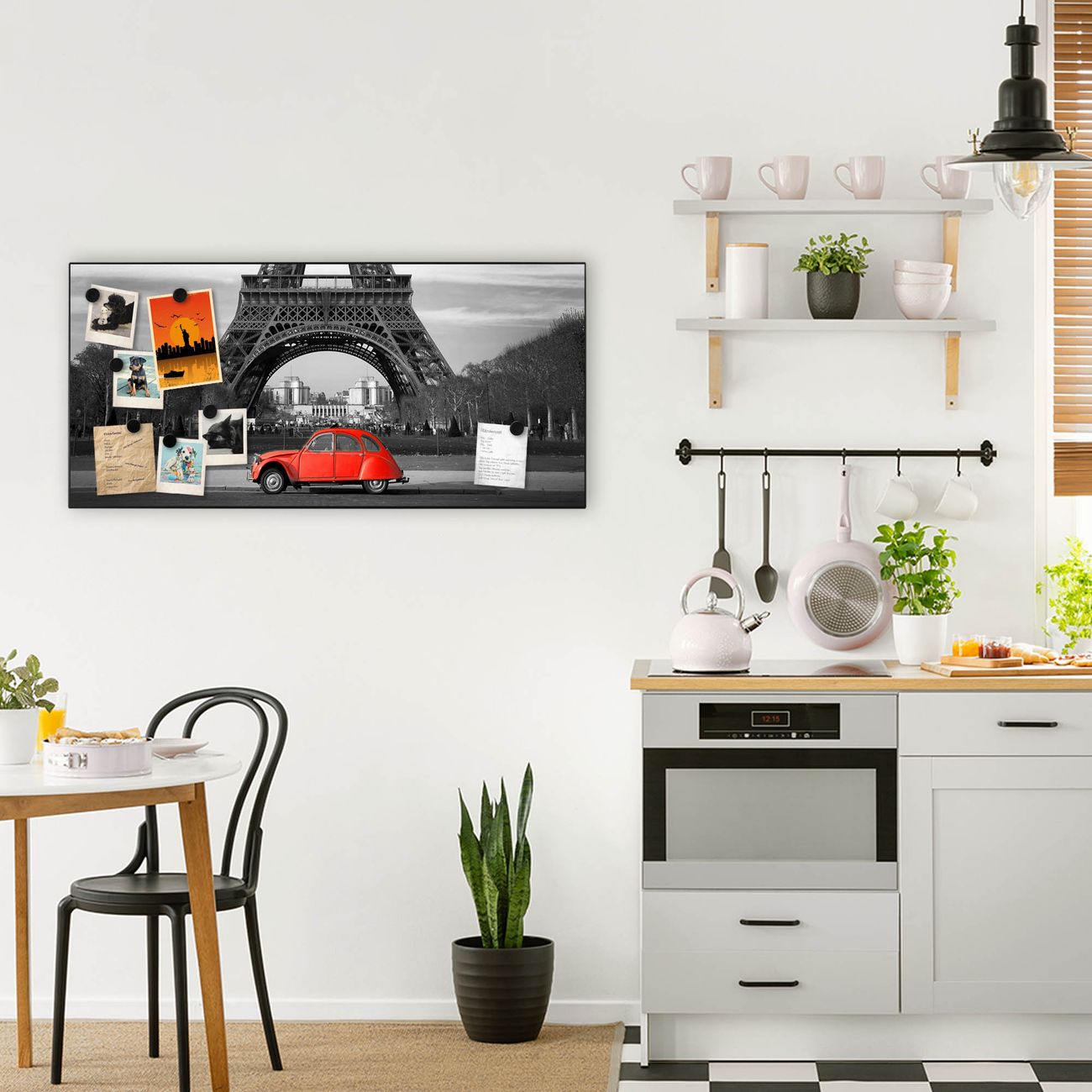 FUNKTION:  Die banjado Magnettafel mit Motiv Paris Motiv bringt Ordnung in Ihr Zettelchaos. Fotos, Termine, Notizen oder Rezepte lassen Sich hier stilvoll mit Magneten ordnen, Sie behalten alles im Blick. An der Design Magnetwand halten alle handesüblichen Magnete. DESIGN:  Die Metall Pinnwand mit dem Motiv Motiv Paris ist ein eleganter Begleiter im Alltag. Mit dieser Magnettafel haben Sie auch ohne Notizen und Magnete ein schönes Dekoelement. Das Format bietet Ihnen ausreichend Platz um alle wichtigen Informationen im Blick zu behalten. DETAILS: Die magnetische Pinnwand besteht aus silber-grau, weiß oder schwarz lackiertem Stahl. Sie hat eine Größe von 78cm x 37cm. Es befinden sich auf der Rückseite vorgefertigte Löcher die eine schnelle und unkomplizierte Anbringung ermöglichen. Das Motiv ist mit einem seidenmatten Laminat versehen und schützt so zusätzlich vor Kratzern. NUTZEN:  Sie können diese Magnettafel wunderbar als Wandbild nutzen, es halten alle handelsüblichen Magneten daran. Das Memoboard ist mit einem feuchten Lappen oder Schwamm abwischbar. Sie finden bei uns eine große Auswahl an passenden Magneten. BANJADO:  Wir sind ein kleines Team aus dem Herzen von Sachsen. Wir fertigen alle Artikel von Hand für Sie an, Sie erhalten keine preiswerte Importware. Auf Wunsch können Sie auch Ihr eigenes Foto auf die Magnettafel aufbringen, schreiben Sie uns an. Herzlichst, Ihr banjado-Team