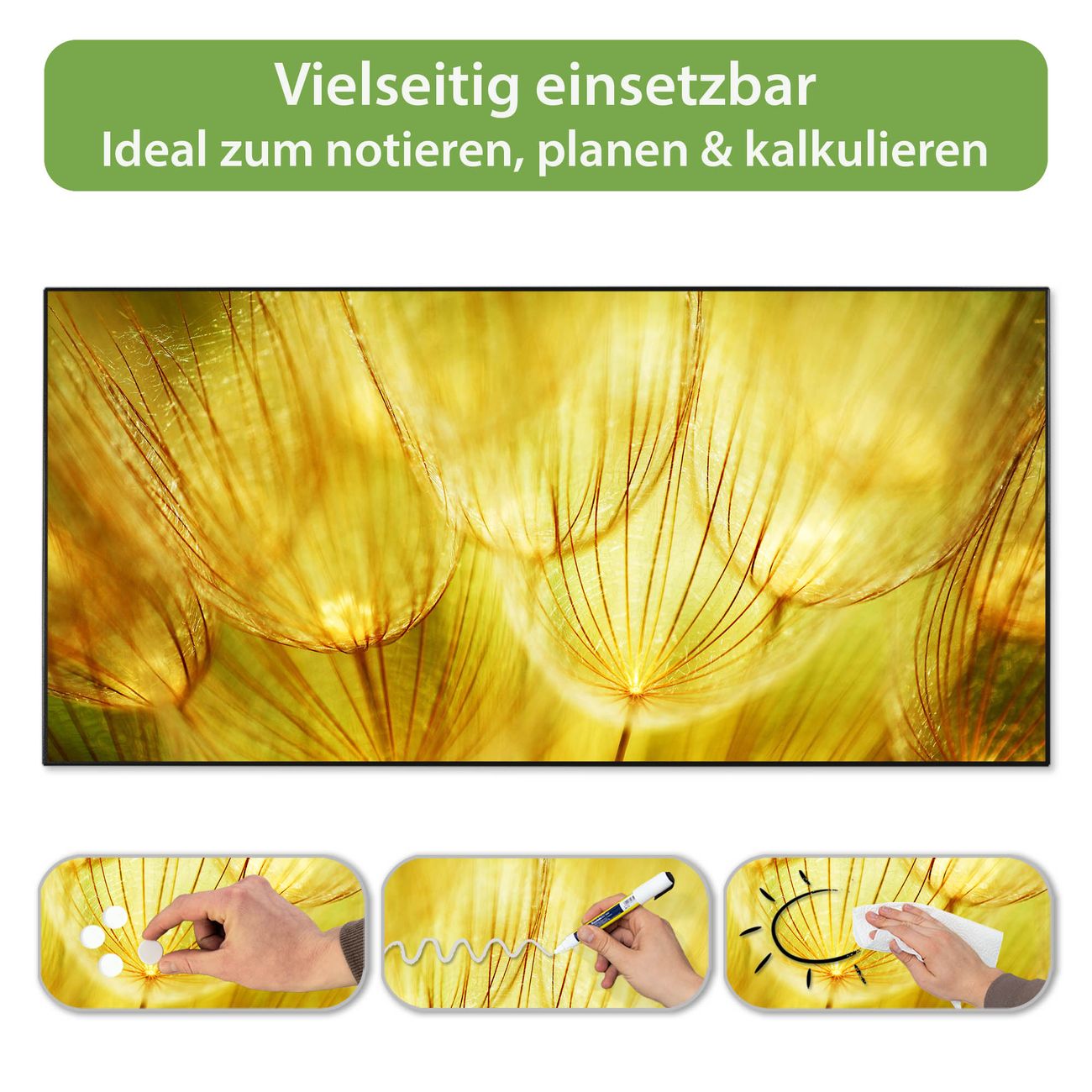 Metall Magnettafel beschreibbar 78x37cm Motiv Pusteblumen Gold