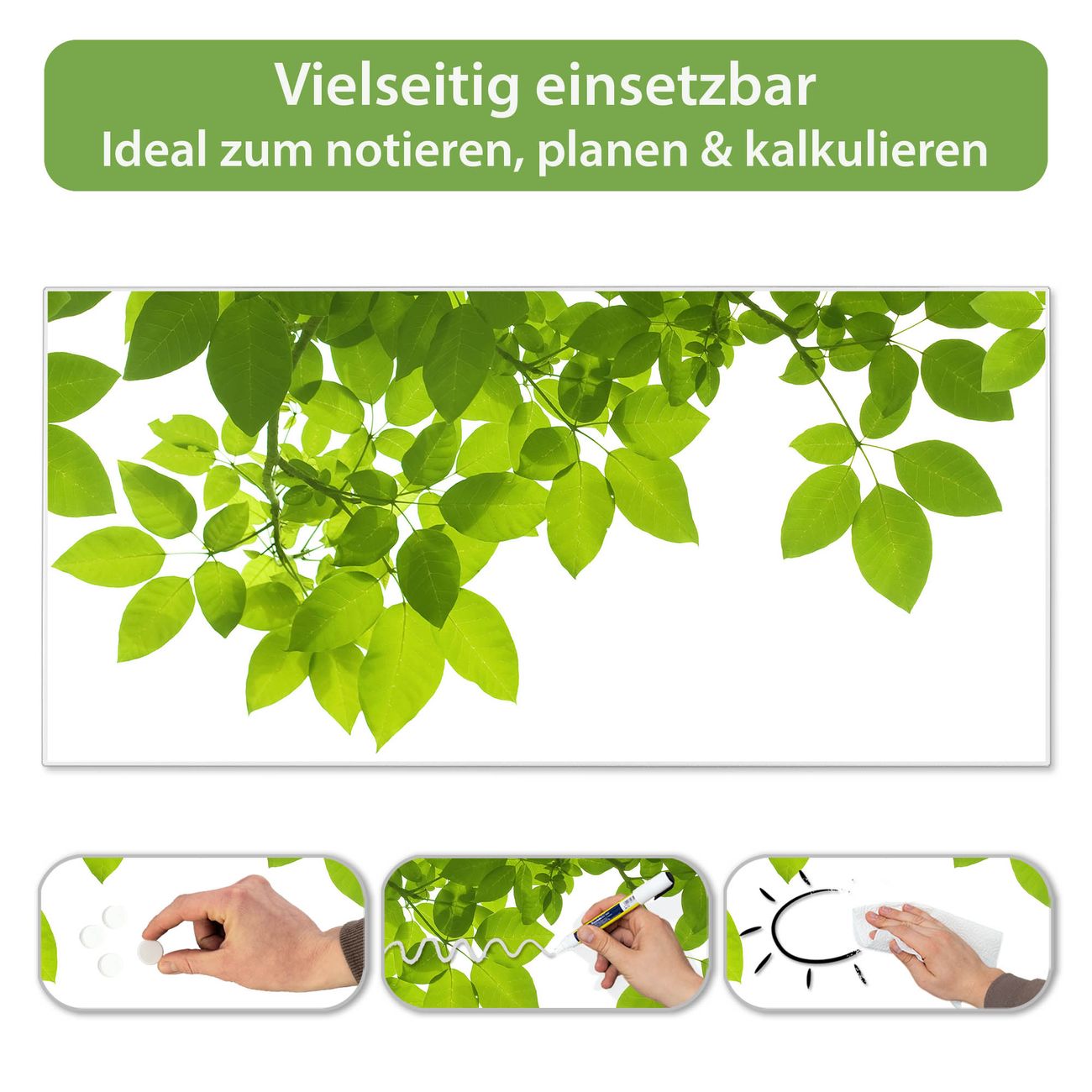 Metall Magnettafel beschreibbar 78x37cm Motiv Rahmen Blätter