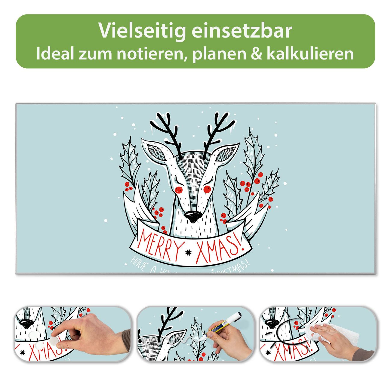 Metall Magnettafel beschreibbar 78x37cm Motiv Rentier