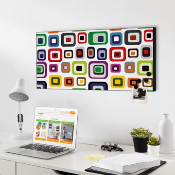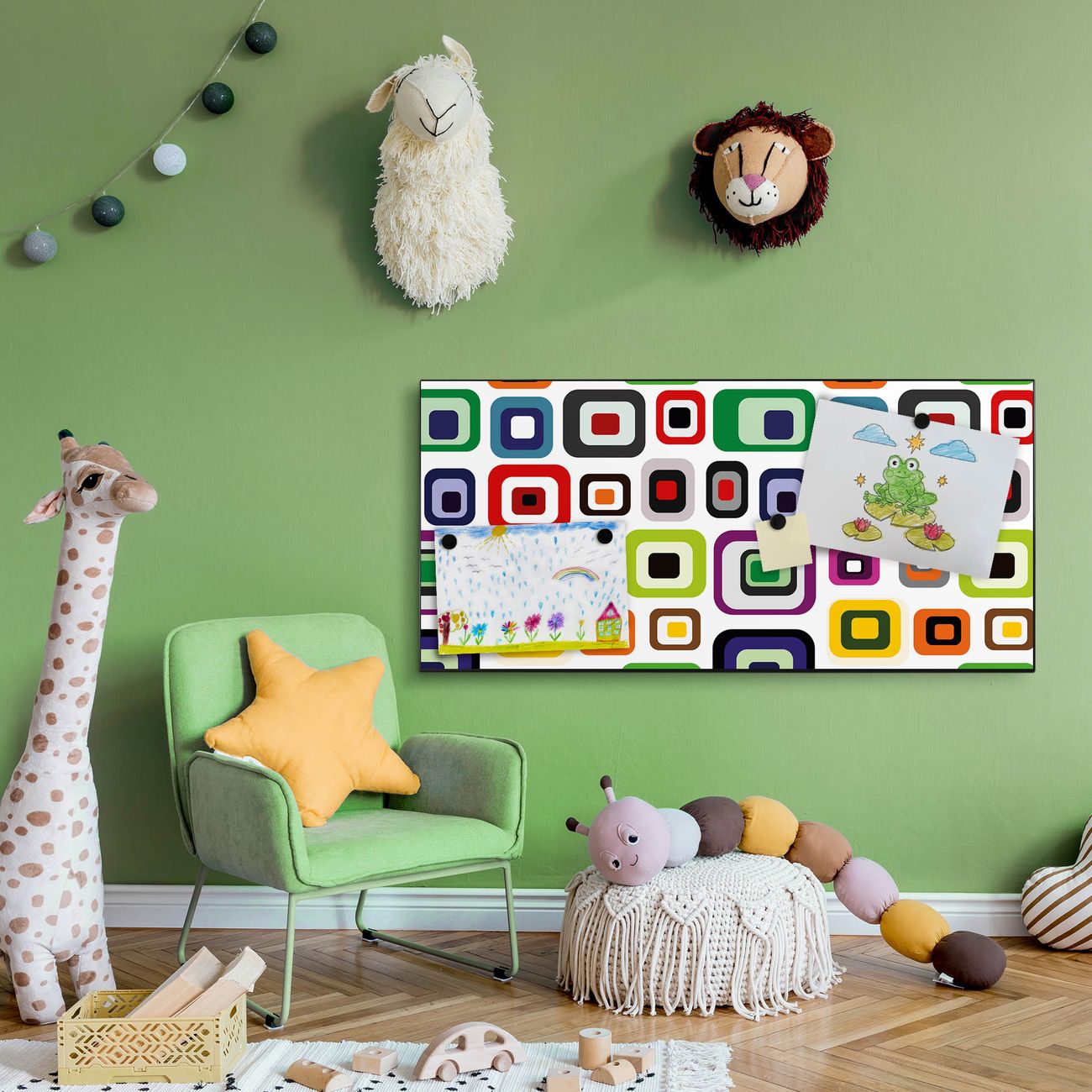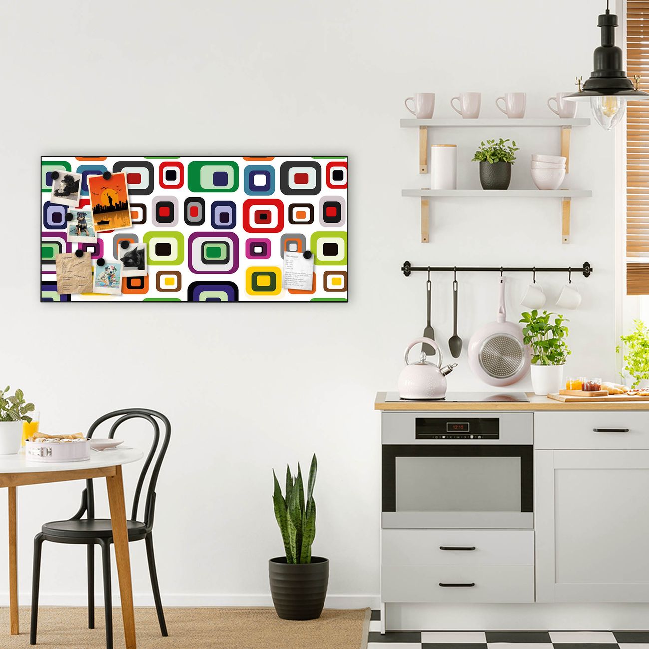 FUNKTION:  Die banjado Magnettafel mit Motiv Retro 2 Motiv bringt Ordnung in Ihr Zettelchaos. Fotos, Termine, Notizen oder Rezepte lassen Sich hier stilvoll mit Magneten ordnen, Sie behalten alles im Blick. An der Design Magnetwand halten alle handesüblichen Magnete. DESIGN:  Die Metall Pinnwand mit dem Motiv Motiv Retro 2 ist ein eleganter Begleiter im Alltag. Mit dieser Magnettafel haben Sie auch ohne Notizen und Magnete ein schönes Dekoelement. Das Format bietet Ihnen ausreichend Platz um alle wichtigen Informationen im Blick zu behalten. DETAILS: Die magnetische Pinnwand besteht aus silber-grau, weiß oder schwarz lackiertem Stahl. Sie hat eine Größe von 78cm x 37cm. Es befinden sich auf der Rückseite vorgefertigte Löcher die eine schnelle und unkomplizierte Anbringung ermöglichen. Das Motiv ist mit einem seidenmatten Laminat versehen und schützt so zusätzlich vor Kratzern. NUTZEN:  Sie können diese Magnettafel wunderbar als Wandbild nutzen, es halten alle handelsüblichen Magneten daran. Das Memoboard ist mit einem feuchten Lappen oder Schwamm abwischbar. Sie finden bei uns eine große Auswahl an passenden Magneten. BANJADO:  Wir sind ein kleines Team aus dem Herzen von Sachsen. Wir fertigen alle Artikel von Hand für Sie an, Sie erhalten keine preiswerte Importware. Auf Wunsch können Sie auch Ihr eigenes Foto auf die Magnettafel aufbringen, schreiben Sie uns an. Herzlichst, Ihr banjado-Team