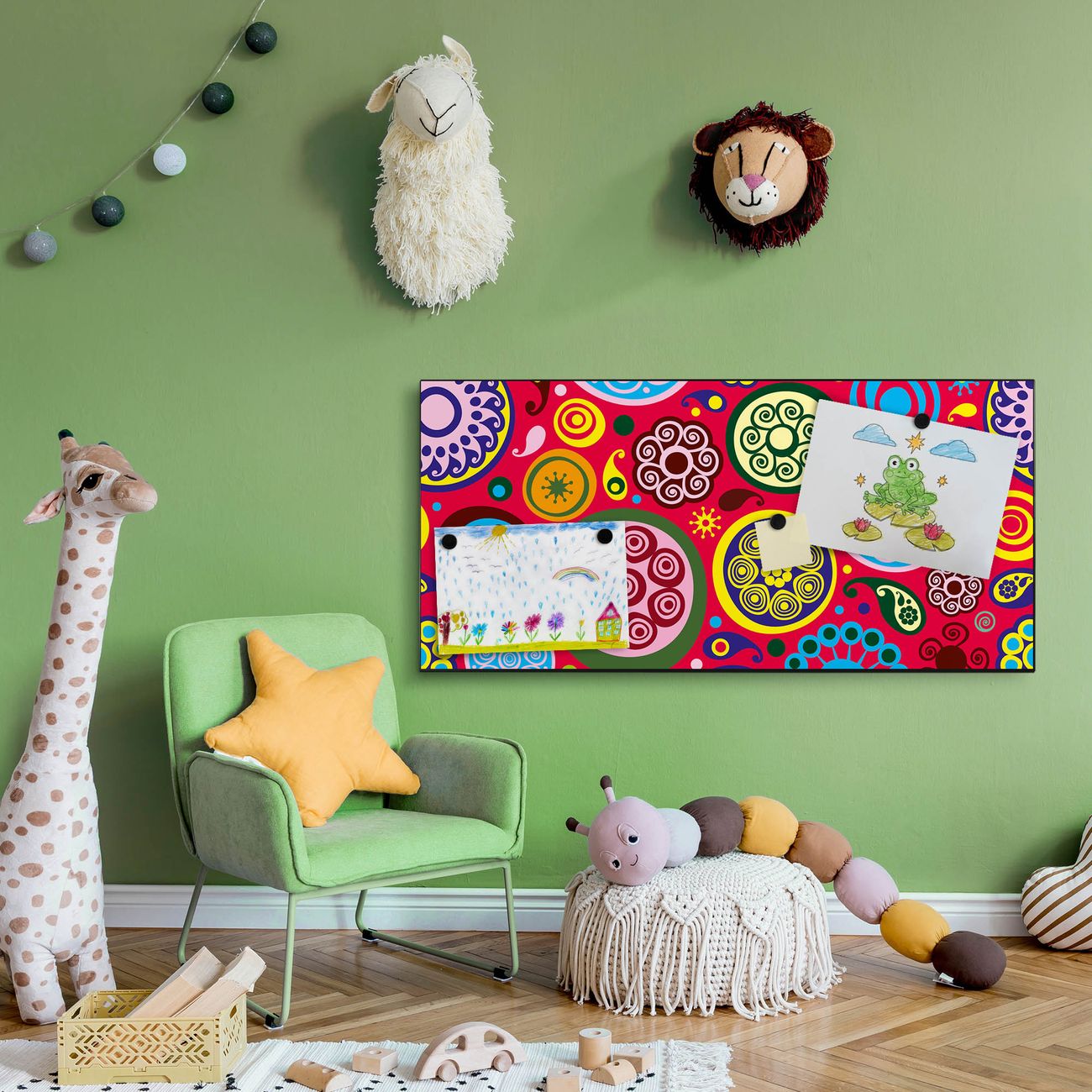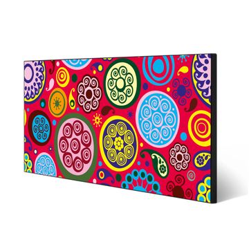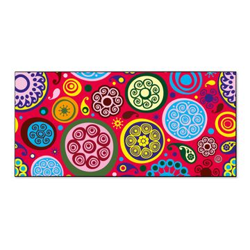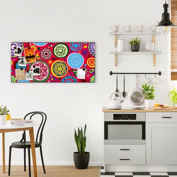 FUNKTION:  Die banjado Magnettafel mit Motiv Retro Kreise Motiv bringt Ordnung in Ihr Zettelchaos. Fotos, Termine, Notizen oder Rezepte lassen Sich hier stilvoll mit Magneten ordnen, Sie behalten alles im Blick. An der Design Magnetwand halten alle handesüblichen Magnete. DESIGN:  Die Metall Pinnwand mit dem Motiv Motiv Retro Kreise ist ein eleganter Begleiter im Alltag. Mit dieser Magnettafel haben Sie auch ohne Notizen und Magnete ein schönes Dekoelement. Das Format bietet Ihnen ausreichend Platz um alle wichtigen Informationen im Blick zu behalten. DETAILS: Die magnetische Pinnwand besteht aus silber-grau, weiß oder schwarz lackiertem Stahl. Sie hat eine Größe von 78cm x 37cm. Es befinden sich auf der Rückseite vorgefertigte Löcher die eine schnelle und unkomplizierte Anbringung ermöglichen. Das Motiv ist mit einem seidenmatten Laminat versehen und schützt so zusätzlich vor Kratzern. NUTZEN:  Sie können diese Magnettafel wunderbar als Wandbild nutzen, es halten alle handelsüblichen Magneten daran. Das Memoboard ist mit einem feuchten Lappen oder Schwamm abwischbar. Sie finden bei uns eine große Auswahl an passenden Magneten. BANJADO:  Wir sind ein kleines Team aus dem Herzen von Sachsen. Wir fertigen alle Artikel von Hand für Sie an, Sie erhalten keine preiswerte Importware. Auf Wunsch können Sie auch Ihr eigenes Foto auf die Magnettafel aufbringen, schreiben Sie uns an. Herzlichst, Ihr banjado-Team
