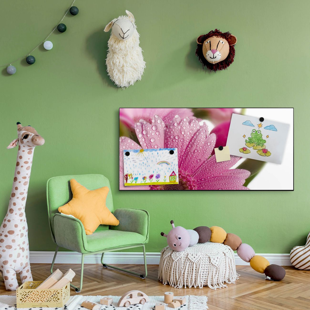 Stahl Magnettafel Querformat 37x78cm Rosa Gerbera