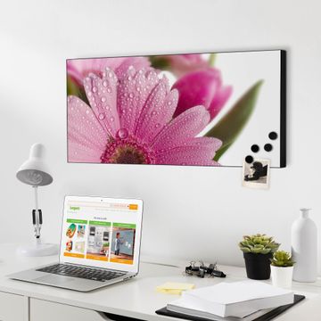 FUNKTION:  Die banjado Magnettafel mit Motiv Rosa Gerbera Motiv bringt Ordnung in Ihr Zettelchaos. Fotos, Termine, Notizen oder Rezepte lassen Sich hier stilvoll mit Magneten ordnen, Sie behalten alles im Blick. An der Design Magnetwand halten alle handesüblichen Magnete. DESIGN:  Die Metall Pinnwand mit dem Motiv Motiv Rosa Gerbera ist ein eleganter Begleiter im Alltag. Mit dieser Magnettafel haben Sie auch ohne Notizen und Magnete ein schönes Dekoelement. Das Format bietet Ihnen ausreichend Platz um alle wichtigen Informationen im Blick zu behalten. DETAILS: Die magnetische Pinnwand besteht aus silber-grau, weiß oder schwarz lackiertem Stahl. Sie hat eine Größe von 78cm x 37cm. Es befinden sich auf der Rückseite vorgefertigte Löcher die eine schnelle und unkomplizierte Anbringung ermöglichen. Das Motiv ist mit einem seidenmatten Laminat versehen und schützt so zusätzlich vor Kratzern. NUTZEN:  Sie können diese Magnettafel wunderbar als Wandbild nutzen, es halten alle handelsüblichen Magneten daran. Das Memoboard ist mit einem feuchten Lappen oder Schwamm abwischbar. Sie finden bei uns eine große Auswahl an passenden Magneten. BANJADO:  Wir sind ein kleines Team aus dem Herzen von Sachsen. Wir fertigen alle Artikel von Hand für Sie an, Sie erhalten keine preiswerte Importware. Auf Wunsch können Sie auch Ihr eigenes Foto auf die Magnettafel aufbringen, schreiben Sie uns an. Herzlichst, Ihr banjado-Team