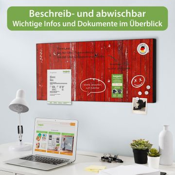 Metall Magnettafel beschreibbar 78x37cm Motiv Rote Holzlatten