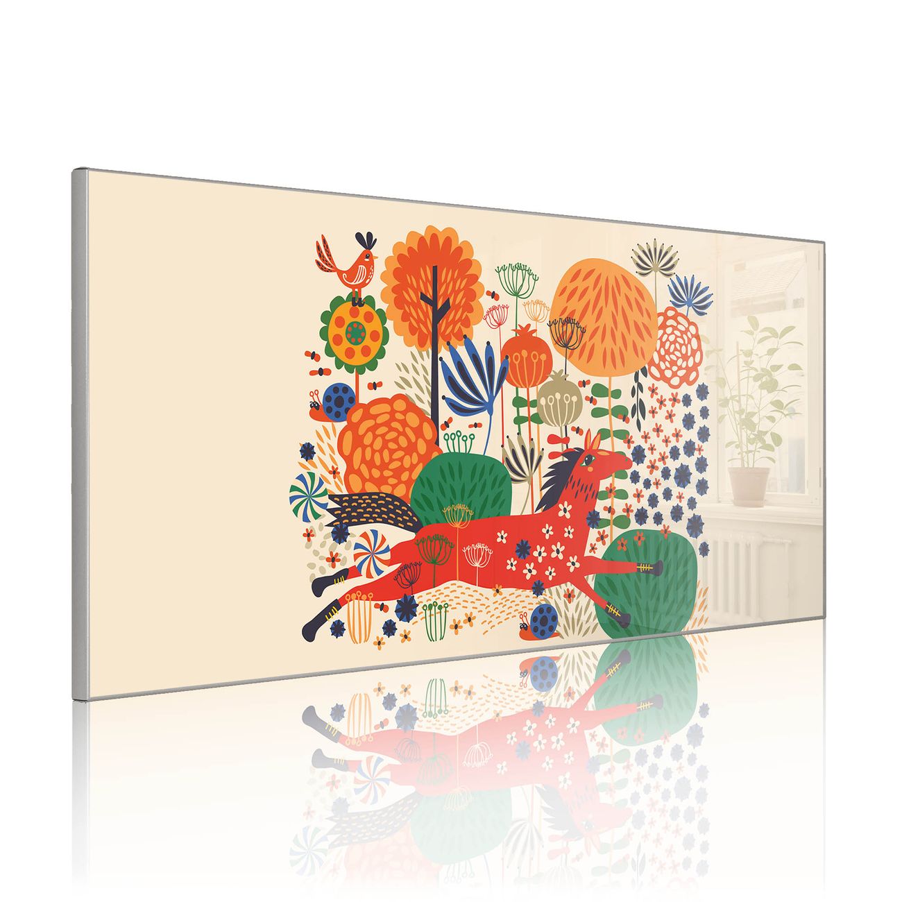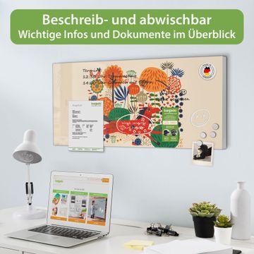 FUNKTION: Die banjado Magnettafel 78x37 cm im Design Motiv Rotes Pferd vereint Funktionalität und modernes Wohndesign auf stilvolle Weise. Diese hochwertige Magnetwand aus Metall hilft Ihnen dabei, Notizen, Fotos, Termine, Einkaufslisten oder Rezepte übersichtlich zu organisieren. Als praktisches Memoboard sorgt sie für Struktur im Alltag und setzt gleichzeitig einen dekorativen Akzent an Ihrer Wand. DESIGN: Die Metalltafel besteht aus robustem, lackiertem Stahl und ist mit allen handelsüblichen Magneten nutzbar. Besonders praktisch ist die beschreibbare Oberfläche. Sie können die Magnettafel ganz einfach mit Kreidestiften beschriften und die Inhalte bei Bedarf mit einem feuchten Tuch wieder entfernen. So eignet sich das Memoboard ideal für Wochenpläne, Menüpläne, To Do Listen oder kreative Botschaften. DETAILS: Mit ihrem großzügigen Querformat von 78x37 cm bietet die Magnettafel ausreichend Platz für Ihre Organisation. Das Motiv Motiv Rotes Pferd bringt eine warme, natürliche Optik in Küche, Flur, Büro oder Homeoffice und wirkt auch ohne Magnete oder Beschriftung wie ein modernes Wandbild. NUTZEN: Auf der Rückseite befinden sich vorgefertigte Löcher für eine schnelle und unkomplizierte Wandmontage. Jede banjado Magnettafel wird in Deutschland gefertigt und steht für Qualität, Langlebigkeit und liebevolle Verarbeitung. Dieses beschreibbare Memoboard ist die perfekte Kombination aus Metalltafel, Designobjekt und praktischer Magnetwand für Ihren Alltag. BANJADO: Wir sind ein kleines Team aus dem Herzen von Sachsen. Wir fertigen alle Artikel von Hand für Sie an, Sie erhalten keine preiswerte Importware. Auf Wunsch können Sie auch Ihr eigenes Foto auf die Magnettafel aufbringen, schreiben Sie uns an. Herzlichst, Ihr banjado-Team