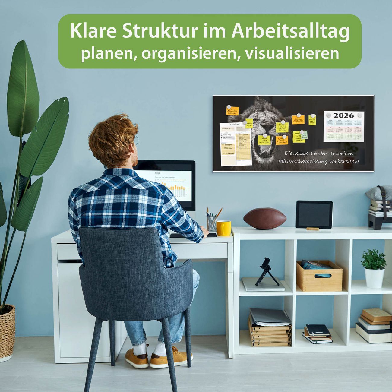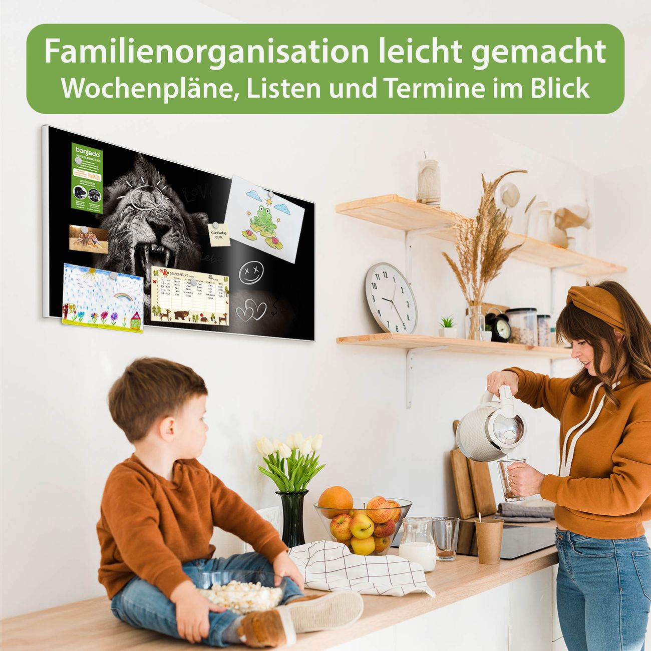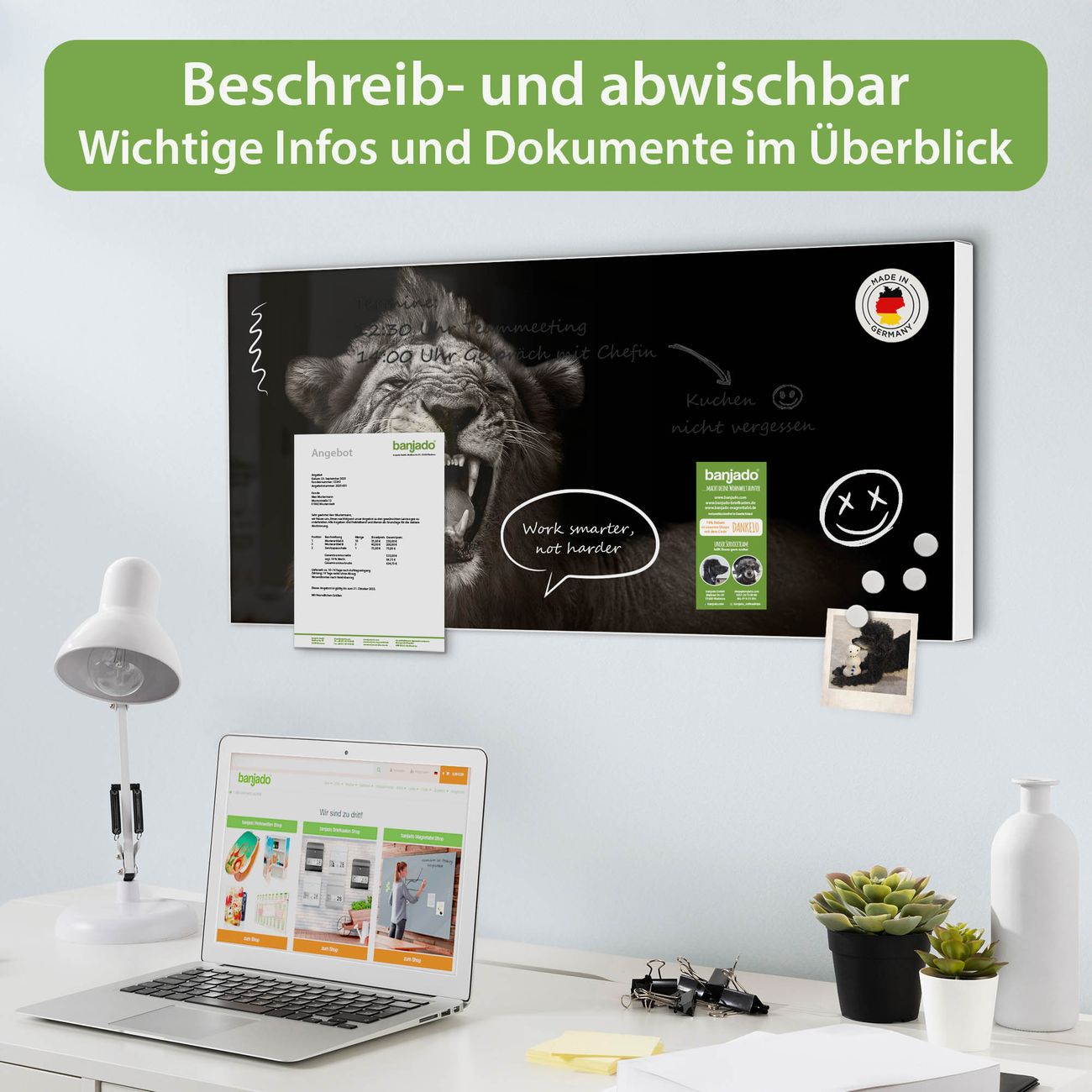 FUNKTION: Die banjado Magnettafel 78x37 cm im Design Motiv Rupert vereint Funktionalität und modernes Wohndesign auf stilvolle Weise. Diese hochwertige Magnetwand aus Metall hilft Ihnen dabei, Notizen, Fotos, Termine, Einkaufslisten oder Rezepte übersichtlich zu organisieren. Als praktisches Memoboard sorgt sie für Struktur im Alltag und setzt gleichzeitig einen dekorativen Akzent an Ihrer Wand. DESIGN: Die Metalltafel besteht aus robustem, lackiertem Stahl und ist mit allen handelsüblichen Magneten nutzbar. Besonders praktisch ist die beschreibbare Oberfläche. Sie können die Magnettafel ganz einfach mit Kreidestiften beschriften und die Inhalte bei Bedarf mit einem feuchten Tuch wieder entfernen. So eignet sich das Memoboard ideal für Wochenpläne, Menüpläne, To Do Listen oder kreative Botschaften. DETAILS: Mit ihrem großzügigen Querformat von 78x37 cm bietet die Magnettafel ausreichend Platz für Ihre Organisation. Das Motiv Motiv Rupert bringt eine warme, natürliche Optik in Küche, Flur, Büro oder Homeoffice und wirkt auch ohne Magnete oder Beschriftung wie ein modernes Wandbild. NUTZEN: Auf der Rückseite befinden sich vorgefertigte Löcher für eine schnelle und unkomplizierte Wandmontage. Jede banjado Magnettafel wird in Deutschland gefertigt und steht für Qualität, Langlebigkeit und liebevolle Verarbeitung. Dieses beschreibbare Memoboard ist die perfekte Kombination aus Metalltafel, Designobjekt und praktischer Magnetwand für Ihren Alltag. BANJADO: Wir sind ein kleines Team aus dem Herzen von Sachsen. Wir fertigen alle Artikel von Hand für Sie an, Sie erhalten keine preiswerte Importware. Auf Wunsch können Sie auch Ihr eigenes Foto auf die Magnettafel aufbringen, schreiben Sie uns an. Herzlichst, Ihr banjado-Team