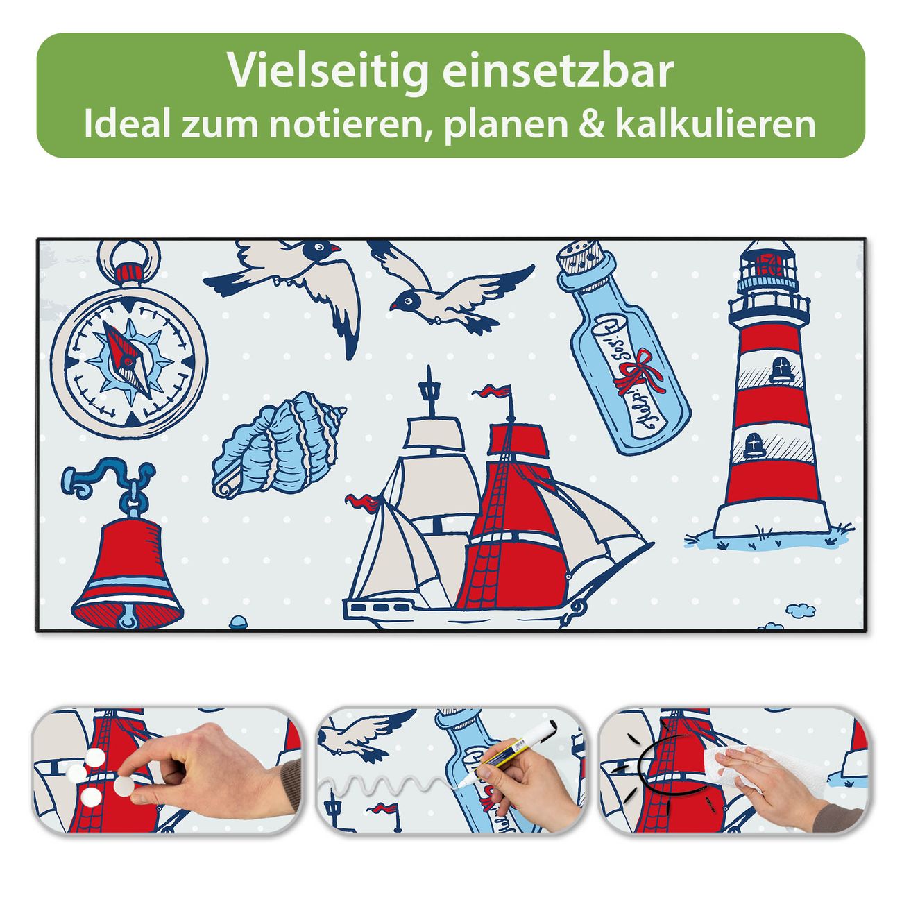 Metall Magnettafel beschreibbar 78x37cm Motiv Schiff Ahoj