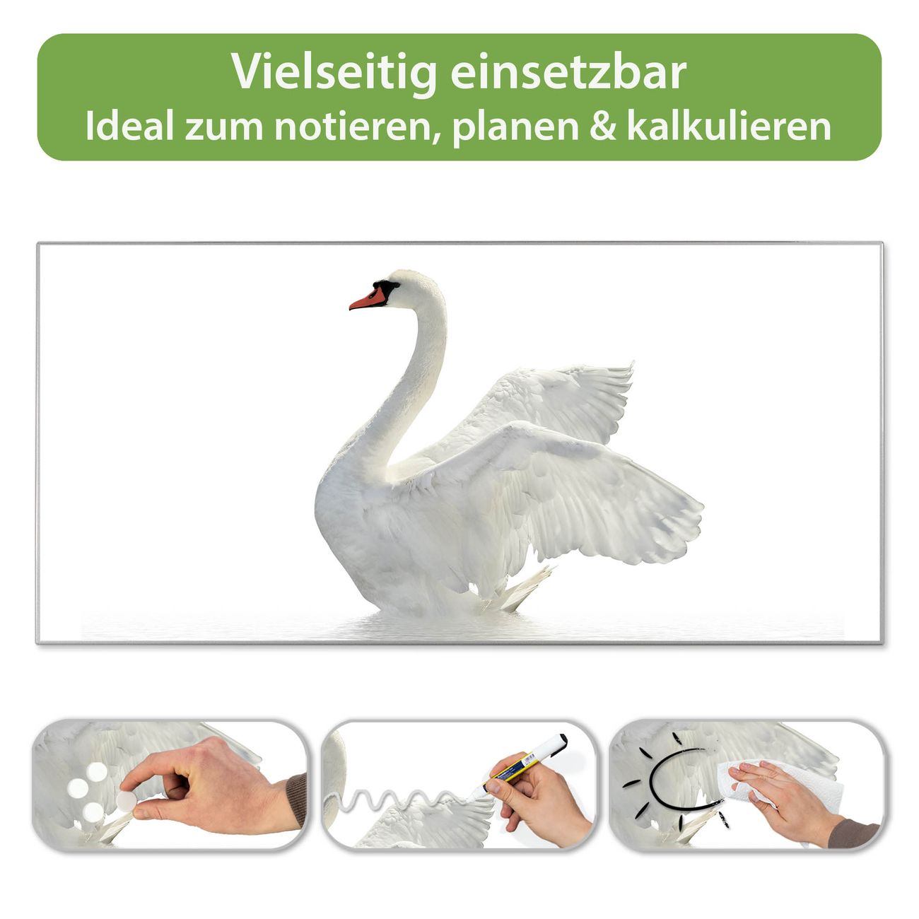 Metall Magnettafel beschreibbar 78x37cm Motiv Schwan