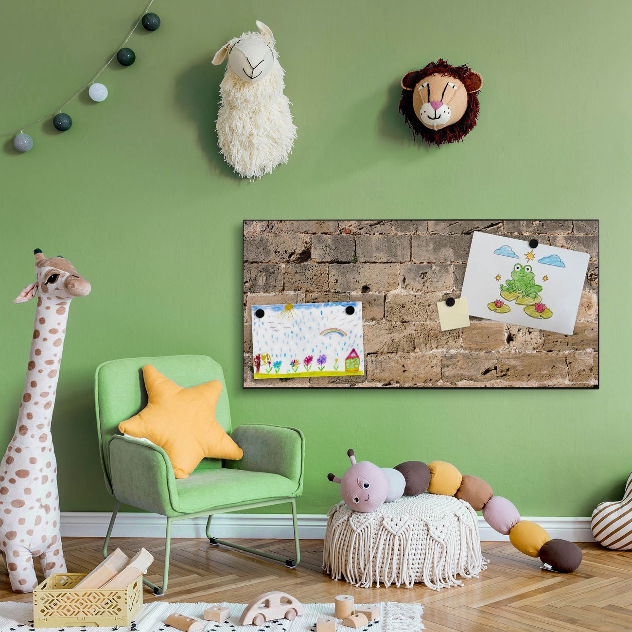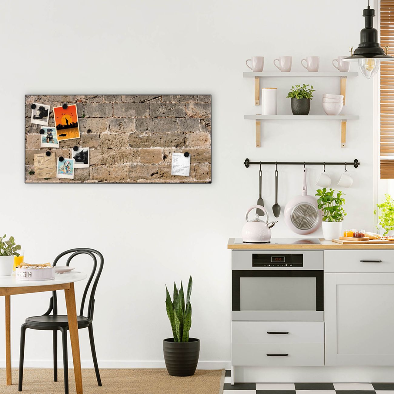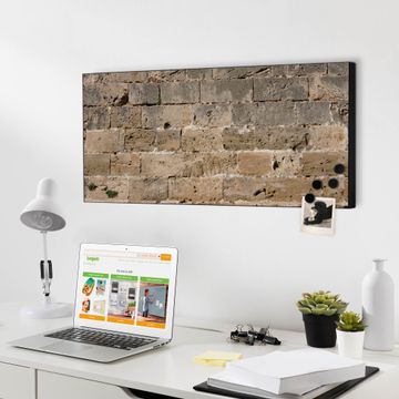 FUNKTION:  Die banjado Magnettafel mit Motiv Steinwand Antik Motiv bringt Ordnung in Ihr Zettelchaos. Fotos, Termine, Notizen oder Rezepte lassen Sich hier stilvoll mit Magneten ordnen, Sie behalten alles im Blick. An der Design Magnetwand halten alle handesüblichen Magnete. DESIGN:  Die Metall Pinnwand mit dem Motiv Motiv Steinwand Antik ist ein eleganter Begleiter im Alltag. Mit dieser Magnettafel haben Sie auch ohne Notizen und Magnete ein schönes Dekoelement. Das Format bietet Ihnen ausreichend Platz um alle wichtigen Informationen im Blick zu behalten. DETAILS: Die magnetische Pinnwand besteht aus silber-grau, weiß oder schwarz lackiertem Stahl. Sie hat eine Größe von 78cm x 37cm. Es befinden sich auf der Rückseite vorgefertigte Löcher die eine schnelle und unkomplizierte Anbringung ermöglichen. Das Motiv ist mit einem seidenmatten Laminat versehen und schützt so zusätzlich vor Kratzern. NUTZEN:  Sie können diese Magnettafel wunderbar als Wandbild nutzen, es halten alle handelsüblichen Magneten daran. Das Memoboard ist mit einem feuchten Lappen oder Schwamm abwischbar. Sie finden bei uns eine große Auswahl an passenden Magneten. BANJADO:  Wir sind ein kleines Team aus dem Herzen von Sachsen. Wir fertigen alle Artikel von Hand für Sie an, Sie erhalten keine preiswerte Importware. Auf Wunsch können Sie auch Ihr eigenes Foto auf die Magnettafel aufbringen, schreiben Sie uns an. Herzlichst, Ihr banjado-Team