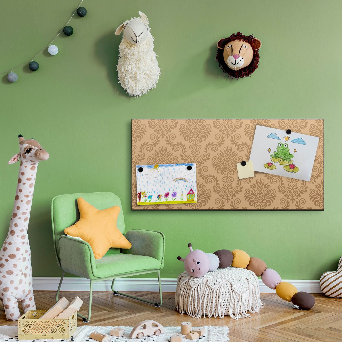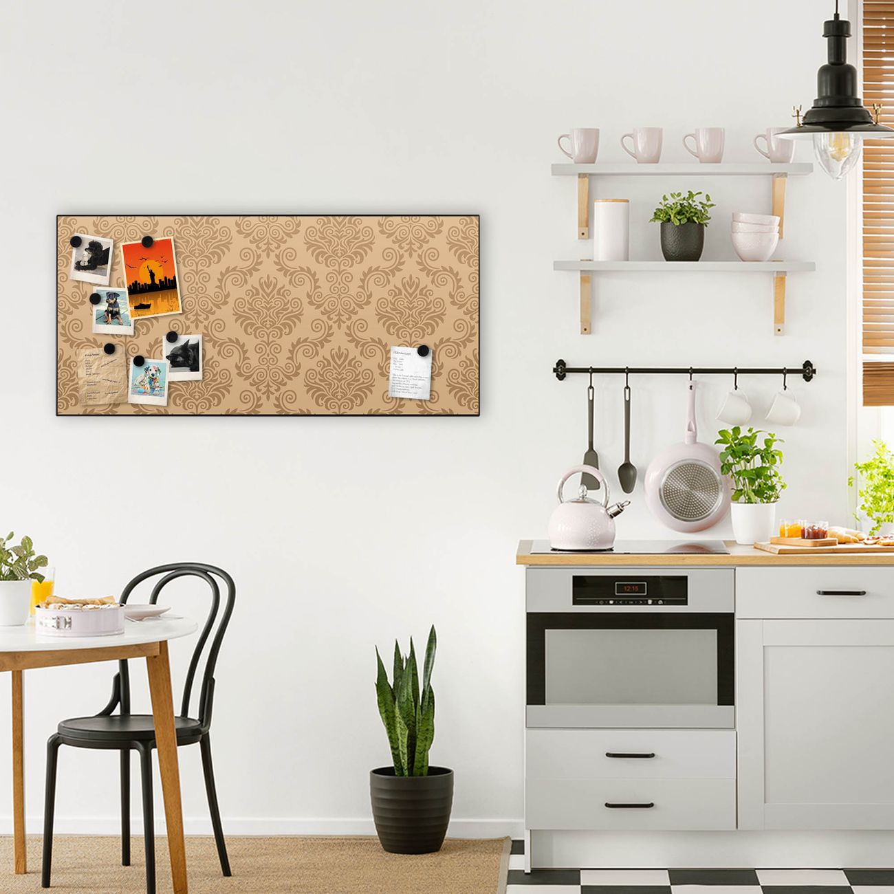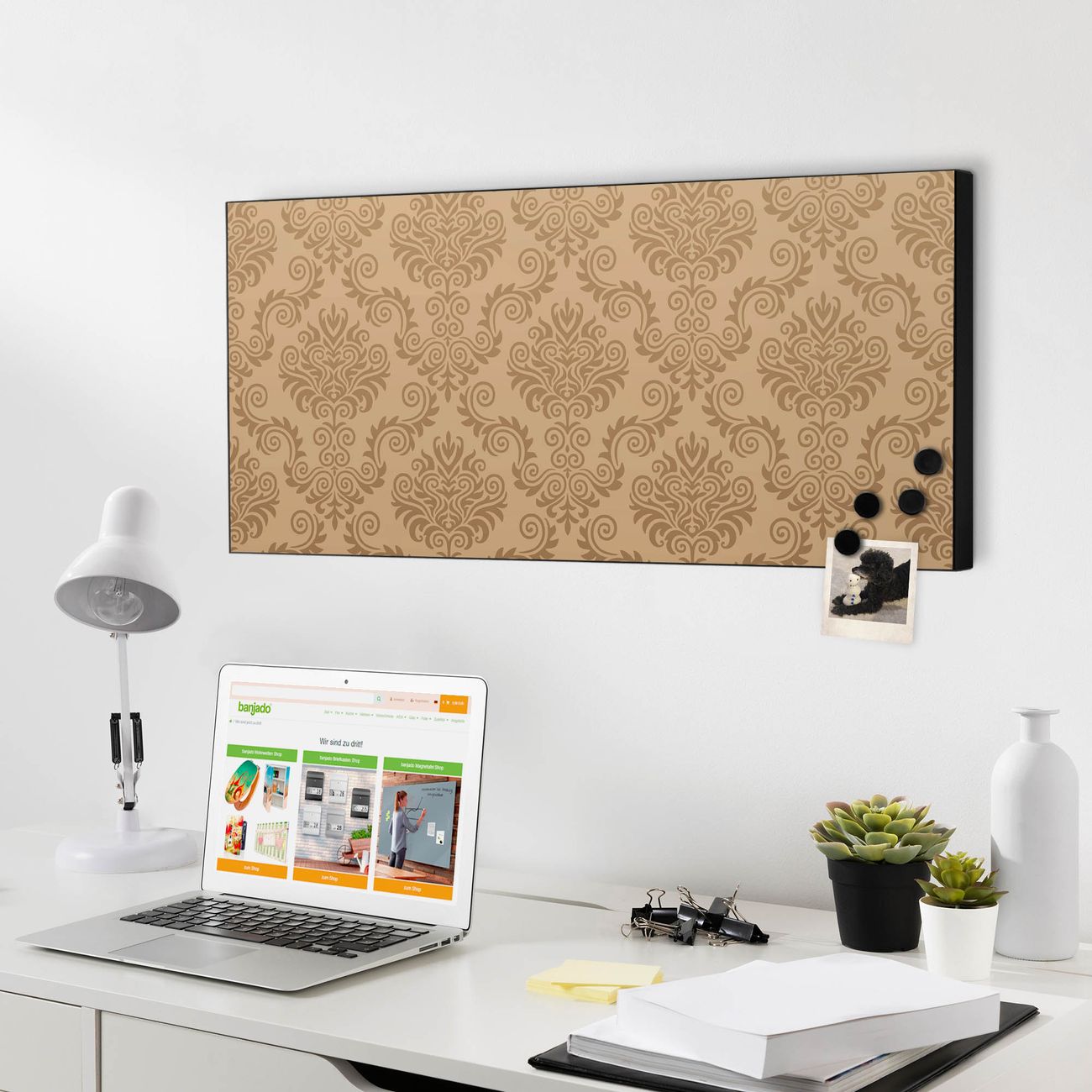 FUNKTION:  Die banjado Magnettafel mit Motiv Tapete Beige Motiv bringt Ordnung in Ihr Zettelchaos. Fotos, Termine, Notizen oder Rezepte lassen Sich hier stilvoll mit Magneten ordnen, Sie behalten alles im Blick. An der Design Magnetwand halten alle handesüblichen Magnete. DESIGN:  Die Metall Pinnwand mit dem Motiv Motiv Tapete Beige ist ein eleganter Begleiter im Alltag. Mit dieser Magnettafel haben Sie auch ohne Notizen und Magnete ein schönes Dekoelement. Das Format bietet Ihnen ausreichend Platz um alle wichtigen Informationen im Blick zu behalten. DETAILS: Die magnetische Pinnwand besteht aus silber-grau, weiß oder schwarz lackiertem Stahl. Sie hat eine Größe von 78cm x 37cm. Es befinden sich auf der Rückseite vorgefertigte Löcher die eine schnelle und unkomplizierte Anbringung ermöglichen. Das Motiv ist mit einem seidenmatten Laminat versehen und schützt so zusätzlich vor Kratzern. NUTZEN:  Sie können diese Magnettafel wunderbar als Wandbild nutzen, es halten alle handelsüblichen Magneten daran. Das Memoboard ist mit einem feuchten Lappen oder Schwamm abwischbar. Sie finden bei uns eine große Auswahl an passenden Magneten. BANJADO:  Wir sind ein kleines Team aus dem Herzen von Sachsen. Wir fertigen alle Artikel von Hand für Sie an, Sie erhalten keine preiswerte Importware. Auf Wunsch können Sie auch Ihr eigenes Foto auf die Magnettafel aufbringen, schreiben Sie uns an. Herzlichst, Ihr banjado-Team